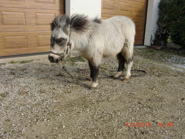 | Dire merci | Voilà, j'ai ramener la petite hier. la mère comme le père son pucés mais pas généotypé, donc la petite restera ONC. Il s'agit d'une pouliche type shet. Mère noire pie, père gris. La pouliche sera sans doute grise. Me reste donc à lui trouver un prénom sympa en "E", facile à dire par les enfants, quitte à ce que ca ne soit pas très originale. Elle n'est pas manipulée, pas licolée et elle était pas sevrée. Là, elle est dans mon camion transformer en box, j'hésite entre la laisser ainsi quelques jours le temps de l'habituer à moi et à être manipulé ou à la mettre dans le petit parc prévu pour elle, au contact de mes dadas d'une part et d'une ponette d'autre part, sachant que je ne suis pas là ce w-end, c'est ma mère néophyte en dadas qui s'occupe d'eux. |