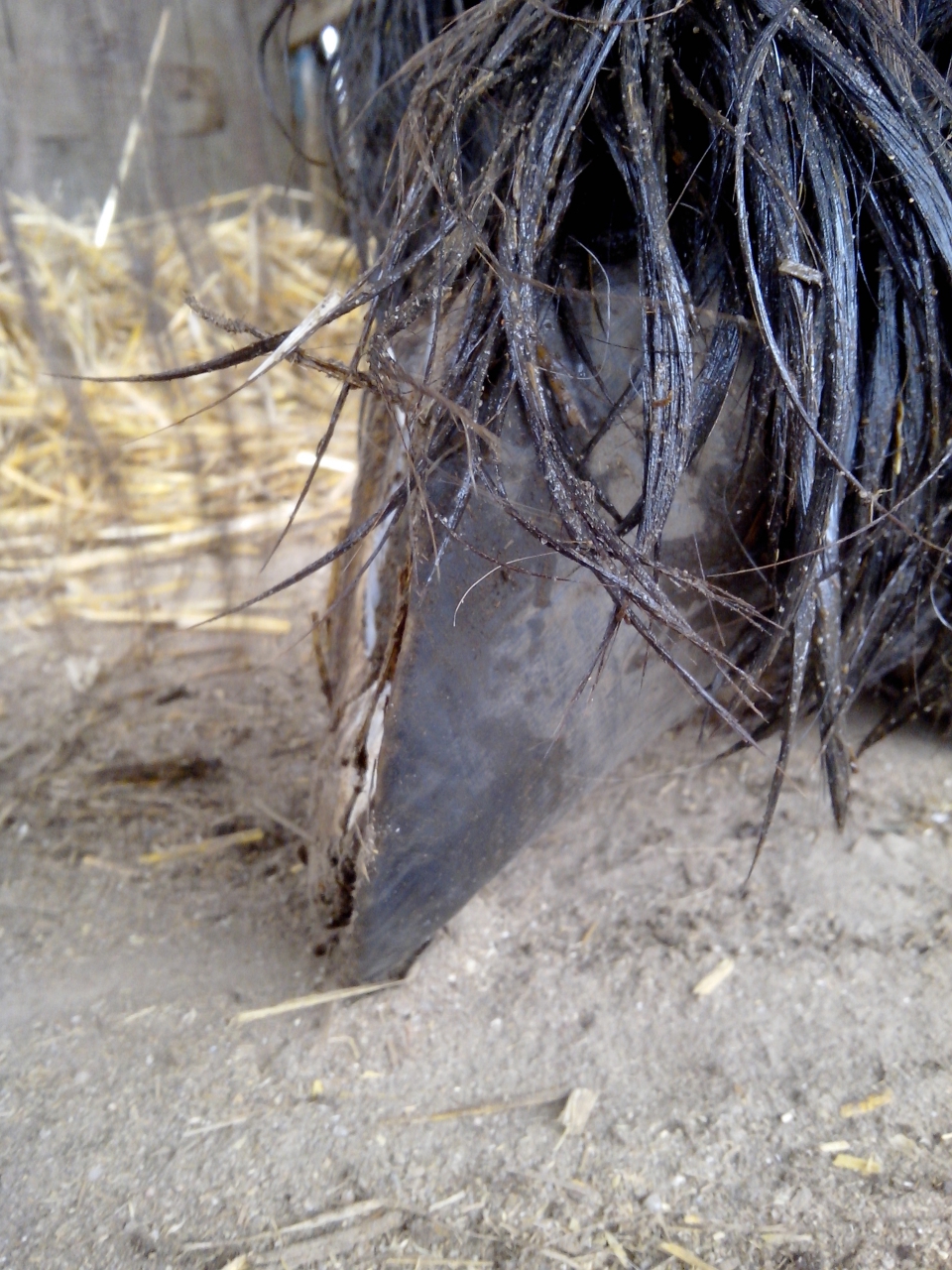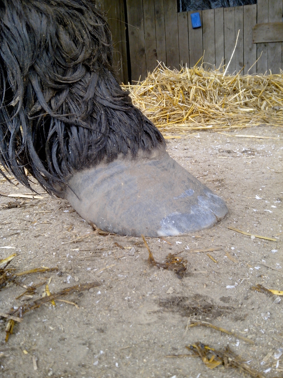 DéconnectéDire merci | J'ajoute juste mon opinion. En plus d'être long en pince le sabot n'est pas dans un état général correct. La corne ne me parait pas saine que ce soit au niveau de la parois, de la sole ou de la fourchette. A cela s'ajoute un problème au niveau de la ligne blanche (fourmilière ou autre ) et une seime.Moi aussi je ferais intervenir un maréchal/pareur pour corriger ces défauts, car un pied en mauvais état fragilise le cheval dans son quotidien. Manifestement il faut plus qu'un parage d'entretien. |