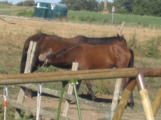 | Dire merci | Qam et Dali ont été séparées 7 mois (durée plus longue que prévue en raison de variables familiales ). jour 1: Dali fonce sur sa mère en hennissant. Sa mère l'accueille des postérieurs de manière assez violente. Jour 2: On se regarde de loin Jour 3: On se rapproche, Dali snappe et tente de téter sa mère qui la repousse encore une fois violemment. Et depuis: grands moments de tendresse (enroulage d'encolures, gratouilles, naseaux contre naseaux...). A l'époque je me posais la question du sevrage et Malaya avait été de bons conseils ![]() |