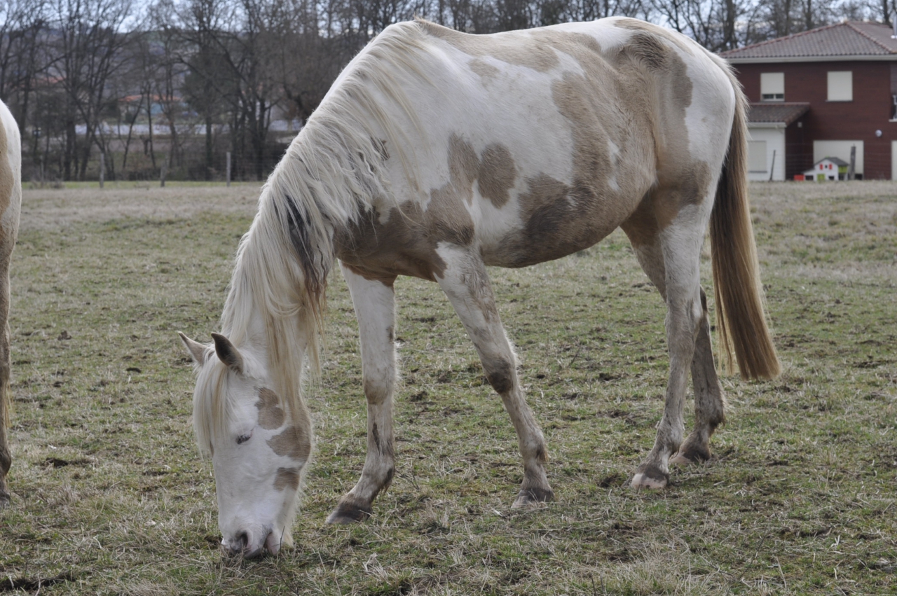 | Dire merci | Effectivement au vue des photos, elle est beaucoup trop chère (tu payes carrément la couleur, la même en alezan/baie/grise est a 1000€ maxi)... Le modèle a pas l'air terrible : Grosse tête, encolure très fine et creuse, pas évident mais sur la première photo j'ai l'impression de voir un dos un peu carpe et une croupe de mule (plate et qui tombe), mais ca c'est peut être la photo qui donne cette impression. Tu es sur qu'elle est palomino de base? Jai un doute avec isabelle (mais suis loin d'être pro des couleurs)... |