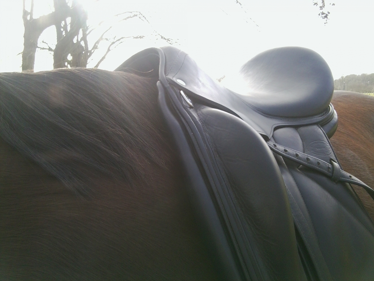 | Dire merci | J'ai essayé de refaire des photos, sanglée sans tapis, la miss ne tenait pas en place alors pas facile! La Milady marron: ![]() ![]() ![]() La Makila noire: ![]() ![]() ![]() (Zut, j'ai oublié de reprendre la gouttière de la noire, mais j'ai vérifié elle est bien droite) A force de les regarder, je pense avoir une préférence pour l'esthétique de la makila, et puis j'suis bien dedans. J'ai les 2 jusqu'à jeudi, ma coach me donnera son avis, mais je ne pense pas garder la marron. Maintenant soit je garde la noire, soit j'attends de trouver une autre (mais toutes les makila que je vois pas trop loin de chez moi sont à minimum 1900/2000€, celle-ci 1500). |