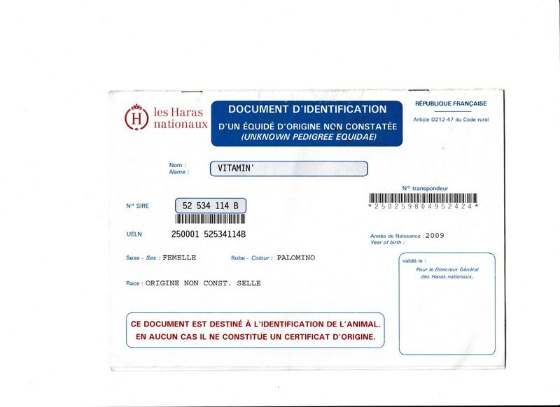 | Dire merci | en cas d'incertitude ces papiers te donnent juste un âge minimal du cheval ![]() |