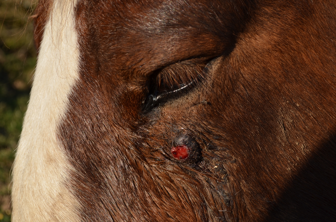 | Dire merci | J'ai testé le Baume de Warendorf, sur un sarcoide sur le passage de tetiere de mon cheval. Il a completement disparu. Application quotidienne durant quelques semaines. (similaire a celui que ton cheval a sous l'oeil mais cela ne saignait pas) |
