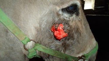 DéconnectéDire merci | Fifi a été opérée de sarcoïdes nodulaires et fibroblastiques mais repousse Cryo rien à y faire j'ai ensuite refait une chirurgie large et électro chimiothérapie (injection cysplasine)3 séances espacées de + 1 mois jument restée en clinique 9 jours à cause du protocole de récupération des urines et crottins 900e chaque séance environ. Pas de repousse depuis 2 ans sur zones traitées mais ma jument ayant des Schwanome donc cancer périphérique j'ai de nouveaux nodules moins d'1cm sur autres zones non gênants qui semblent se stabiliser jument au pré 24/24 peu de mouches pour venir les asticoter donc à voir mais à refaire je repasserais pas l'électro chimiothérapie. |