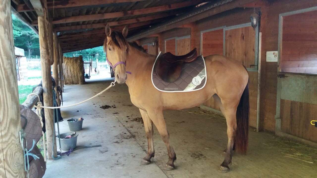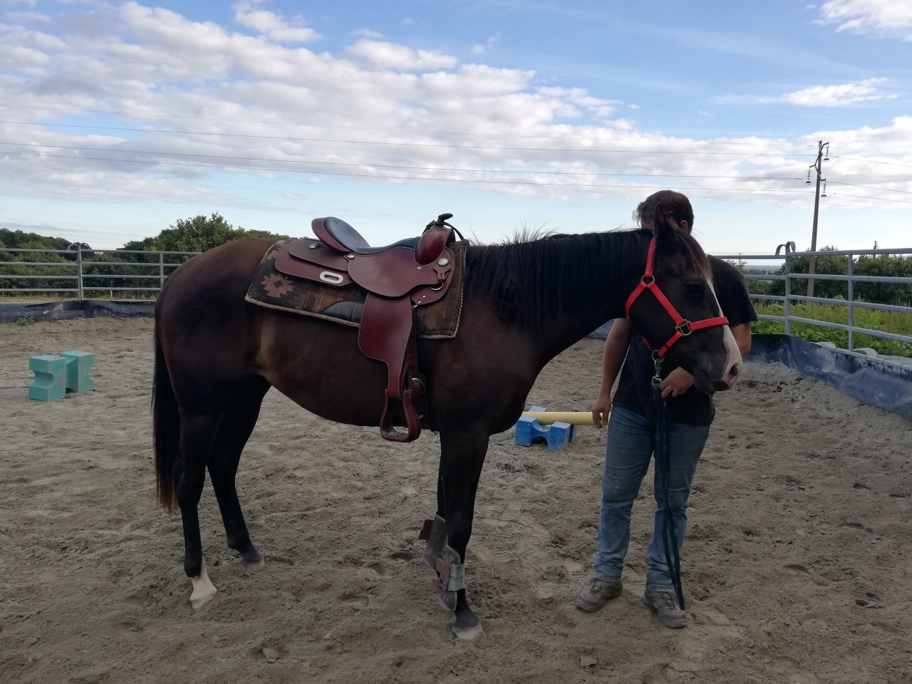 | Dire merci | Bonjour à tous Je viens vous donner des nouvelles de Festival qui s'est fait opéré d'une fracture du sesamoide et d'une tenosynovite septique. Le pronostic était assez flou, on espérait juste qu'il puisse avoir une belle vie au pré sans boiter. La convalescence s'est extrêmement bien passé, Festival est resté très sage au boxe ferme durant trois mois. La remise en route avec des sorties en main juste quelques minutes par jour on été extrêmement compliquées par contre. Mais aujourd'hui Festival va très bien et à même été débourré le mois dernier. Ce fut une simple formalité, il est extrêmement sur en extérieur c'est un bonheur. |