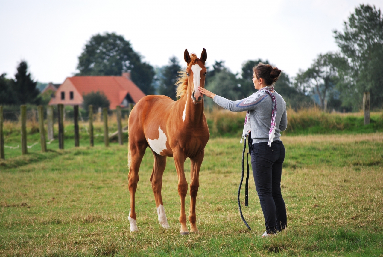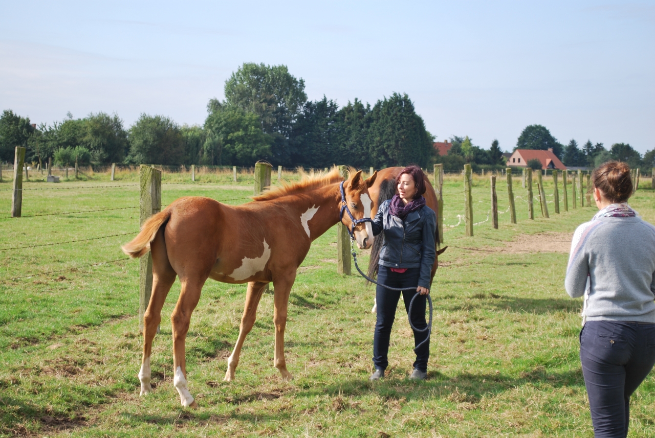 | Dire merci | Moi, j'ai de la chance qu'il ne soit pas très loin (2h30 aller retour), je bosse le licol depuis quelques fois, et la marche en longe aussi, il accepte le licol sans soucis pour l'instant, on en est à quelques pas en longe; c'est le début; j'espère que ça ira quand même pour le faire monter en van! J'espère aller chercher dans 3 semaines. Il devrait avoir 7 mois. Il n'est pas encore sevré pour l'instant. Je voudrais aussi le castrer au printemps pour ses 1 ans. J'ai vu le véto hier, je lui en ai parlé. Il m'a fait un peu peur. Je pensais que si les 2 n'étaient pas descendus, j'irais le faire castrer en clinique. Le véto m'a prévenu que c'était une grosse chirurgie avec un gros suivi post-op (10-15 jours d'hospitalisation), qui allait coûter cher, et que ce n'était pas sur que je trouve une clinique qui accepte de faire ça aussi jeune.. Je ne pensais pas que c'était une grosse chirurgie. Je vais prier que les 2 soient descendus pour le printemps, parce qu'il va vivre H24 avec ma jument, et je ne veux aucun risque de poulain. Je ne sais pas ce que je ferais si ce n'est pas descendu... |