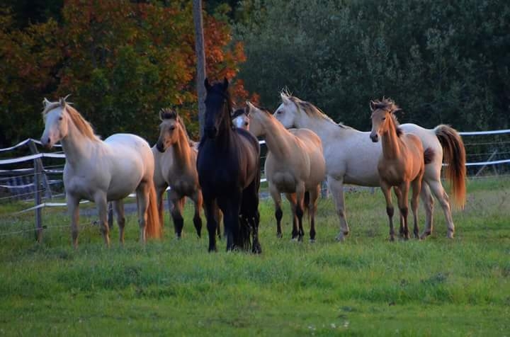 | Dire merci | Oui voilà, sinon ils ont tout le temps une bonne excuse Tiens pour la première fois j'ai vu Fenris se prendre un bon coup de pied dans les côtes par l'autre poulain ... en même temps il l'avait bien cherché, je sais pas si c'est son caractère ou si il fait du mimétisme (sa mère a beaucoup chassé les 2 poulains au début) mais qu'est ce qu'il est emmerdeur avec les autres. Il charge et il mord, ba au bout d'un moment bim .... et la minute d'après ils galopaient tous les 3 comme des débiles à fond les ballons. Et les mères au milieu à pas broncher Même quand Fenris s'amuse à monter ma jument elle dit plus rien C'est fou comme il est devenu tout foufou depuis quelques semaines, c'est peut être à cause de l'automne ^^ |