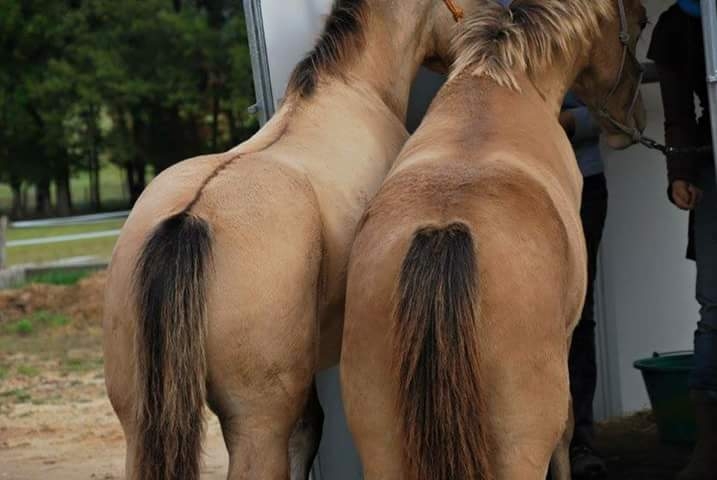 | Dire merci | Oui c'est ça mon futur mec (s'il se tient à carreau du moins ).Pour ton poulain tu peux tjrs tenter à 1000€ ... Pour te donner une idée ma pouliche fjord x hispano/arabe (mère ONC père PP) dunskin je l'ai vendue 1 400€ au sevrage, papiers OC pucée vermifugée primo-vaccinée et très bien manipulée ! Après les mâles se vendent tjrs moins cher ... |