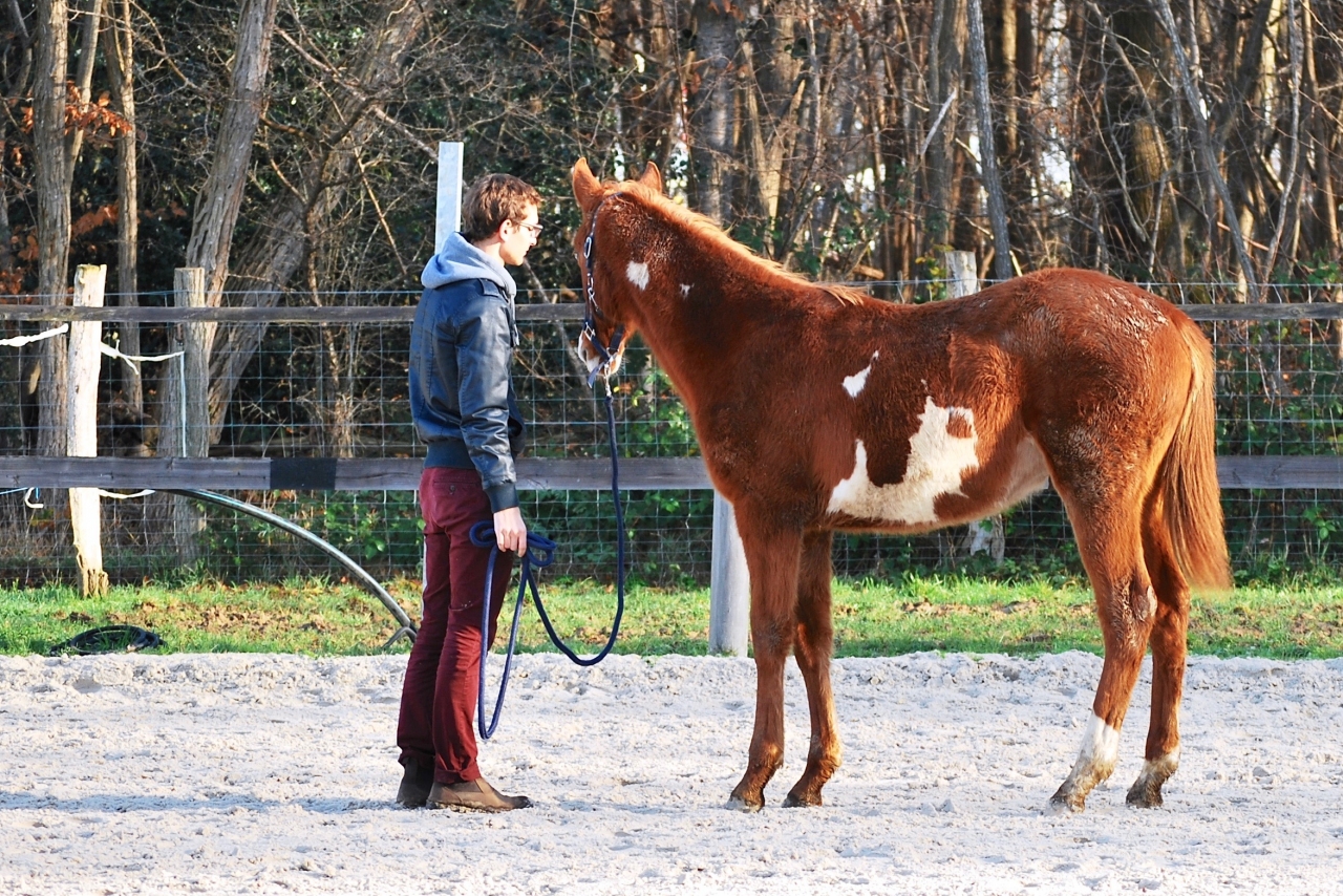 | Dire merci | Pareil mon poulain ne fait rien d autre que marcher en longe pour aller au pré ou au manège. A partir du moment où il se laisse toucher de partout, mettre un licol, marcher en longe sans aucune difficulté je le laisse tranquille. Sauf hier puisque le marechal est venu pour son deuxième parages. On aurait dit un vieux cheval. Le marechal n à même pas eu à poser une seul fois ses pieds pour qu il reprenne son équilibre. Il était ravis car tous les poulains qu il a à faire ne sont pas comme ça. |