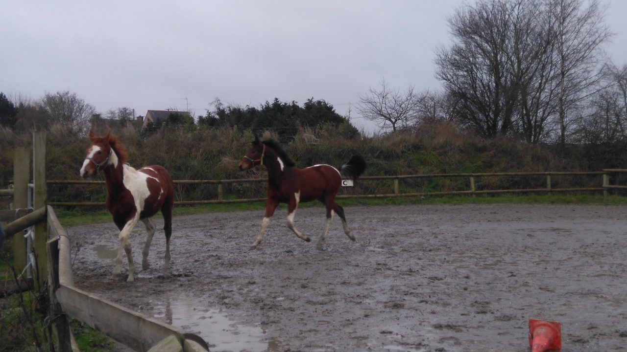 | Dire merci | Festival va finir en saucisson sale gosse, y'a des jours comme ça ... Surtout avec les ptits mecs je suppose que tu lui as pardonné parce qu'il est beau !!!Nous on était voir Titi cet aprem, rien de transcendant, lâché en carrière mais il était pas motivé ... Un peu de travail à pied, il a été sage donc on a vite abrégé (sous la pluie pfff) puis un pansage et mon homme l'a tenu le temps que je repaille son box (sinon il se fait torturer par ses voisins de box lol les grandes saucissent aiment pas le petit bouledogue). J'y retourne demain ou mardi selon la météo là je me dis "purée au moins à la maison t'as le manège..." lol!Il pousse du cul ... ![]() |