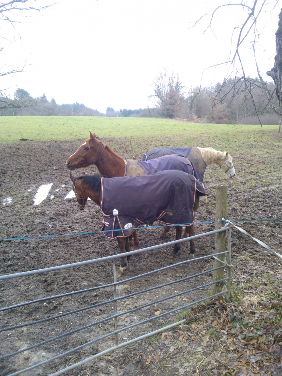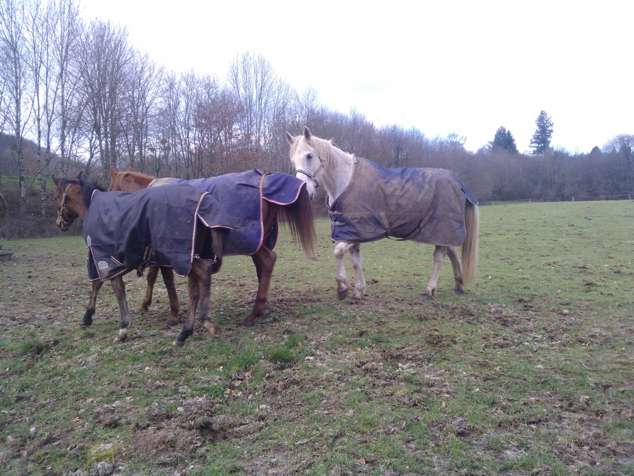 | Dire merci | Salut ici! Je découvre peu à peu les poupous du post... ![]() La gale de boue quelle saloperie... ![]() Une connaissance pschitte ça à la bombe AB et ça fonctionne plutôt bien. ![]() Avec vos histoires de testicules je suis bien contente d'acheter des filles maintenant. Bon je l'ai déjà fait faire avec mes mâles mais les filles c'est plus simple. coccina Il est mimi ton cheval, bien typé (irisetquiara39 Le tien aussi d’ailleurs.... ). dodher Tu es militaire? Chouettes installations où est ton cheval (c'est un tachu apparemment, quoi comme race?). ![]() faust06 J'ai été dans le même cas que toi quand j'ai acheté Bebida car elle était seule avec mon anglo. Quand je le montais je la laissais fermée dans un petit enclos d'où elle ne pouvait pas s’échapper (ancien chenil avec des clotûres très hautes) ça lui a appris la séparation tout en sachant qu'il allait revenir, le tout en sécurité. Par la suite mon anglo a lui beaucoup plus stressé quand je partais avec Bebida et qu'il attendait à la maison... moncheval33 Moi aussi je suis assez impressionnée Foxy fait bien dans les 105,110. J'ai dû échanger sa couverture achetée en 4''3 pour du 5''0 (il me semble...). ![]() al Quel calme tes chevaux dans un tel environnement! ![]() D'ailleurs bon exercice de désensibilation la couverture car en plus on a fait l'attache en même temps. Elle a compris que quand on tire au renard ça cède pas et du coup une fois la couverture passée sur la garrot elle n'a plus bougé. On a fait aussi les pieds je me suis pas trop bagarré pour une première c'est top. ![]() Je couvre car mon pré est assez exposé au vent et il n'y a pas d'abri en dure. Effectivement il peut y avoir des risques, je surveille plusieurs fois par jour. Une des sangles sous le ventre de Foxy s'est détachée plusieurs fois au début quand elle courait car elle était trop lâche mais la miss a pas plus paniqué que ça et j'ai pu bricolé dessus tranquille. ![]() Aujourd'hui j'ai réintroduit mon anglo. Ça s'est très bien passé, Foxy se cache derrière Bebida mais répond aussi par de jolies ruades quand il la cherche. Un vrai caractère cette petite! ![]() ![]() Cet aprem j'ai rajouté au troupeau la ponette qui tape. Comme le troupeau est calme ça a limité les risques et ça s'est bien passé mais je surveille car c'est une carne celle-là... ![]() |
