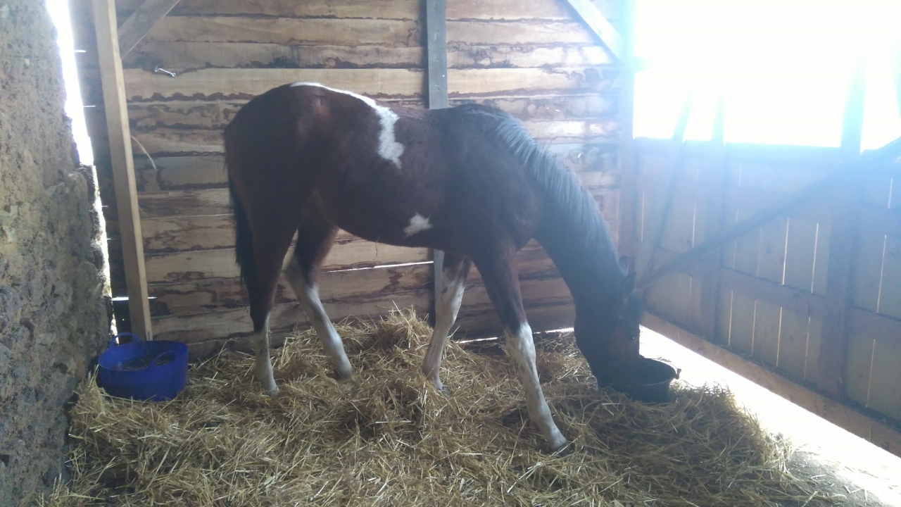 | Dire merci | Mon poulain était en stabulation avec un autre du même âge. Il sortait au près qu un après midi sur deux. Du coup pas un pète de poils ! Et super en état. Foin à volonté et une ration d enrubanné et ça c est le top l enrubanné quand il est fait bien sec pour les chevaux! |