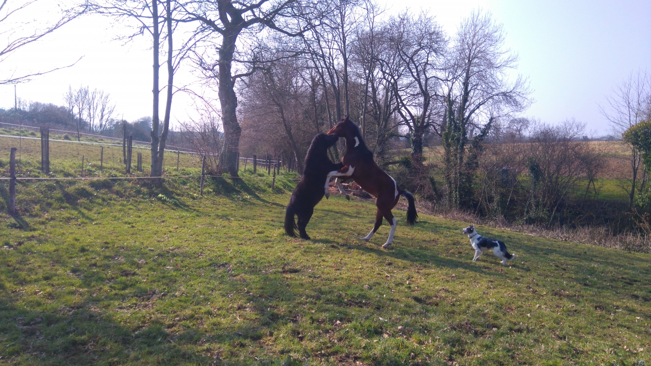 | Dire merci | Après moi je les ai vue dans le champs. J ai vu des poulains et des poulinières tous avenants, pots de colle en étant très respectueux. Je ne les ai pas vue hors du champ. |