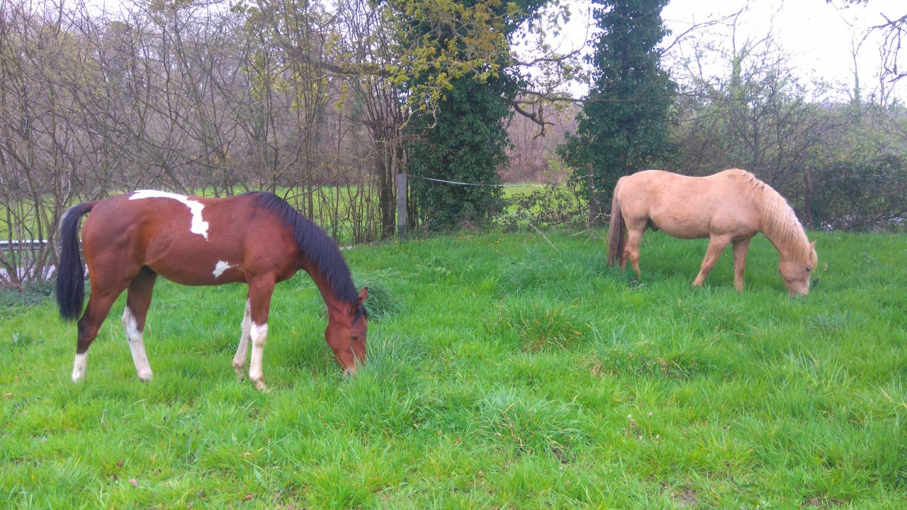 | Dire merci | Aujourd'hui mise à l'herbe ! Ils sont heureux ! Ils ne vont pas pouvoir rester à l'herbe bien longtemps tous ensemble, les poneys vont devoir être dans un paddock rapidement. ![]() |