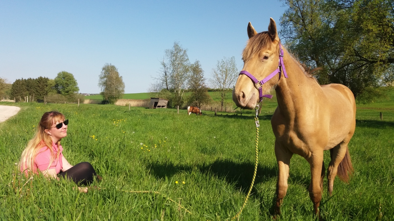 | Dire merci | Pour éviter le côté trop exclusif de Féerie et comme je suis loin durant la semaine, j'ai coaché ma mère ce we pour qu'elle puisse la sortir si nécessité impérative et urgente. Elle devrait pas être amené à devoir la sortir du pré pour la ramener à l'écurie toute seule mais on sait jamais: veto, pareur... . Bon à la base elle est pas super à l'aise avec les chevaux et Féerie n'était pas très gentille avec elle ces derniers temps ... mais elles ont fait de beaux progrès ensemble. C'est loin d'être parfait, mais ma mère se fait mieux respecter car plus claire dans ses demandes et Féerie a pigé qu'il est interdit de mordre l'"autre patronne"... ![]() Etes vous seules à vous occuper de vos loulous ou avez vous des membres de votre famille qui interviennent? Si oui comment ça se passe? |