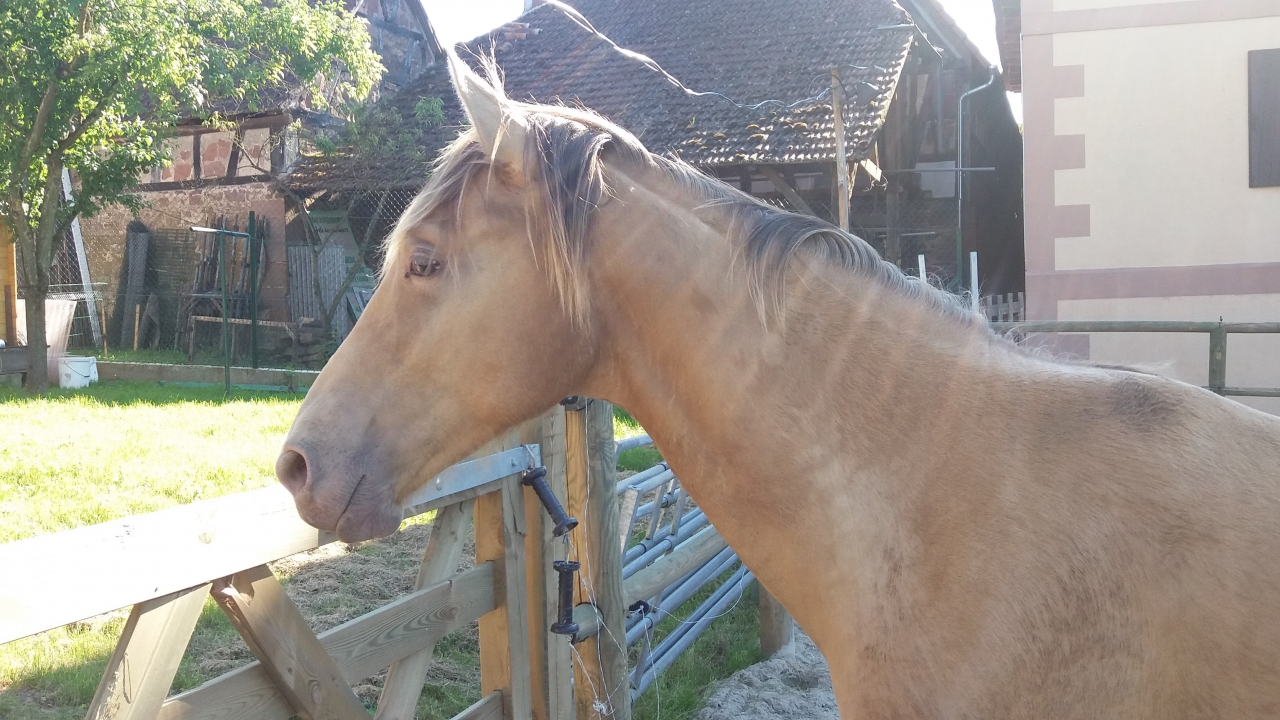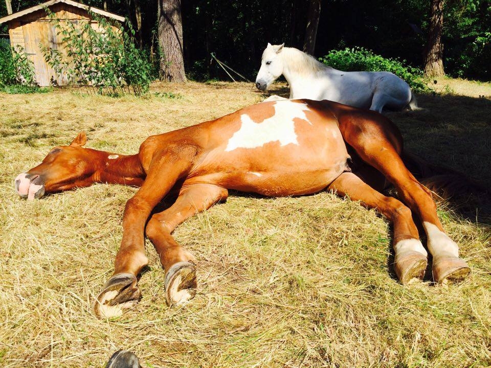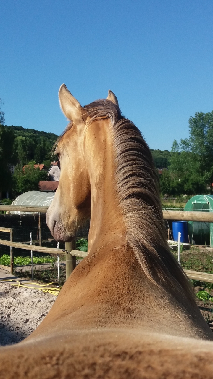 | Dire merci | irisetquiara39 les km en changement de pré ne me choquent pas non plus surtout sur le temps que tu dis, la mienne fera bientôt un paquet de km aussi (un peu moins que toi mais pas tant) pour changer de pré Pour les sorties de manière générale, je sors avec Jalinéa quasi depuis son arrivée sur tout type de sol et régulièrement l'hiver (l'été elle est en pré plus loin de la maison donc tranquille) urkhan quelle chevelure ta miss nirvelli Pour le bonbon j'aurais fait pareil si j'en donnais (j'en donne jamais mais ça me choque pas du tout que tu en aies donné) d'autant qu'il y avait retour au calme. Par contre si elle s'est mise dans cet état pour moi c'est que c'était trop entre le nouveau chemin et les autres pas calme a revoir peut être sur ce que tu lui demandes pour ne pas qu'elle entre dans cette zone rouge?lou ann58 TOn loulou grandit trooooooop ^^ Il est superbe cici tjs aussi fan de ton lou et plutot positif pour sa première expérience ![]() Par ici Jalinéa grandit en faisant sa petite vie, le pré en pente n'a plus de secret pour elle, elle tape des galops en montée, en descente elle gère sur ses quilles Tjs la première a venir me voir quand je vais au pré le tit soucis que j'ai eut de "les insectes m'énerves je bouge sans faire attention à toi" est passé, elle me contourne mnt au lieux de pousser ^^ On prépare le pré suivant pour un changement en dextre derrière mon papy avec une copine qui s'occupera de mon poney Par contre soucis avec les mouches, il fait tellement moche qu'elles attaquent dure dès qu'il fait meilleur du coup pour les yeux sensible c'est la mouise. J'ai du courir à la sellerie prendre un bonnet pour elle, moi qui voulait pas lui en mettre mais les yeux gonflés à cause des mouches c'est juste pas possible Enfin comme tjs, elle est on ne peut plus facile, la longe sur l'encolure et zou essayage du bonnet que je puisse regarder comment l'adapter à sa fine tête car un poney est trop grand pour elle... Et le lendemain elle venait fourrer sa tête dedans après que je l'ai modifié Elle entre donc dans le club des vengeurs masqués... ![]() Le masque c'est trooooop traumatisant ![]() ![]() Le cucul pousse ^^ ![]() L'hyperflexion ça s'apprend dès le plus jeune age |
