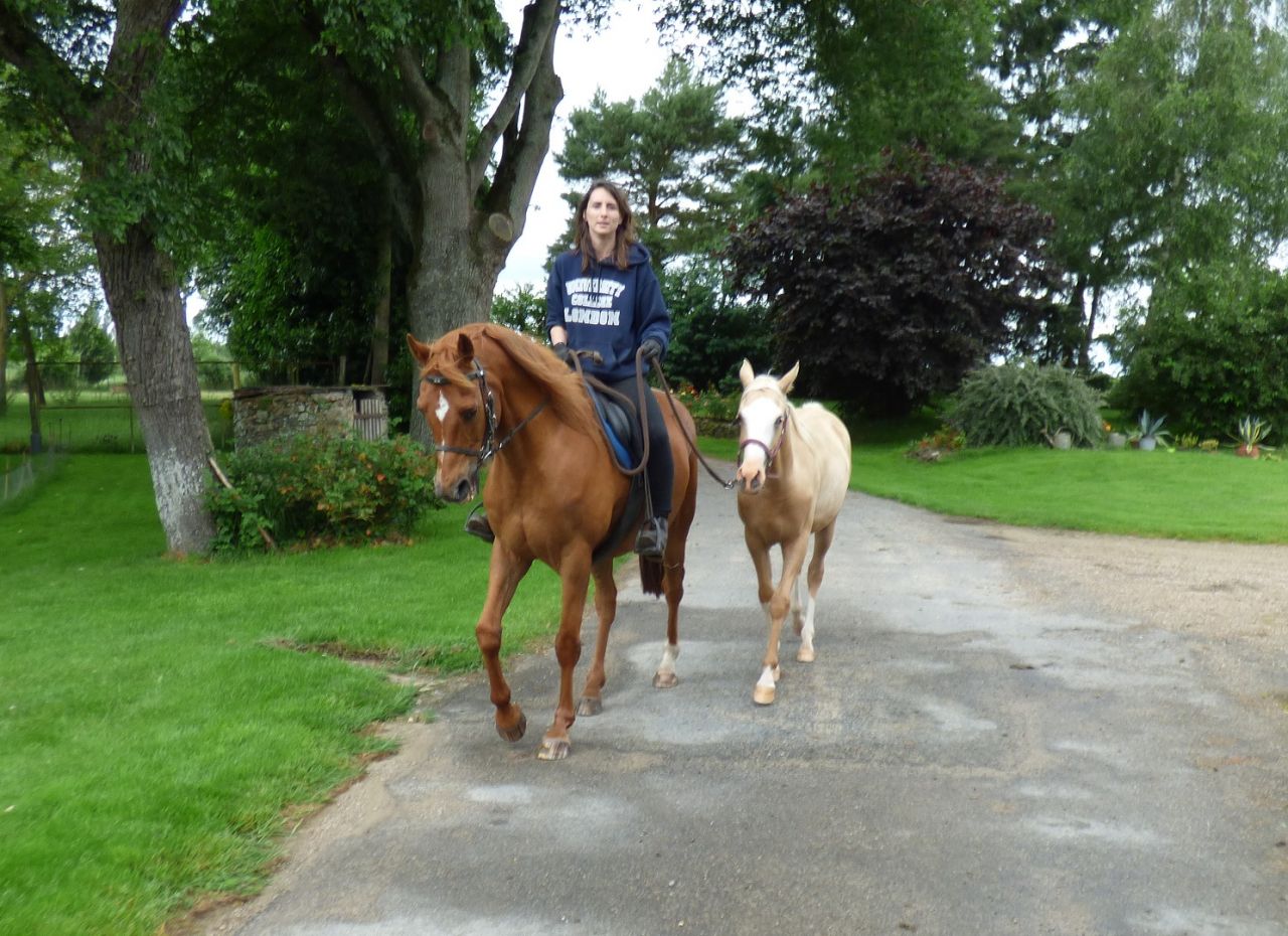 | Dire merci | Ce soir, je vais sortir Dakota à nouveau seule. J'aimerais bien que les 2 vieux restent tranquille pour ne pas la chauffer. Ce qui m'embête le plus, ce serait qu'elle prenne le pli de ne pas supporter d'être seule. Les 2 vieux avec qui elle est, ne supportent pas de se retrouver seuls, ce que je trouve vraiment pénible. Enfin, j'envisage de rapatrier ma petite à l'automne, ça me coutera plus cher mais j'aurai mes 2 chevaux ensemble, parce que là, entre le boulot et les 2 pépettes, je m'épuise... et puis je suis très frustrée que les 2 ne se connaissent pas encore, je suis certaine que ça va coller niveau caractère, et je préfèrerais que Dakota se calque sur ma jument que sur les 2 avec qui elle est actuellement. |