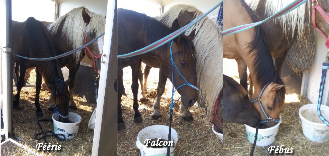 | Dire merci | +1 pour la chainette préserver la bouche, à tout prix, il faut garder en tête que la finalité du mors, c'est la PRECISION, et si tu lui défonces ses commissures dès tout bébé, ça va pas le faire.... de mon côté, j'avoue que je "délaisse" un peu mes poulains photographiquement parlant ![]() ben oui, entre l'étalon en concours, à la plage, les poulinous etc., j'ai un pote photographe sympa, mais jpeux pas non plus le squatter à tout bout de champs ![]() les voici donc, en photo avec le portable ![]() entrainement au van il y a qq semaines, alors que Féérie avait fait sa pimbêche 2 semaines plus tôt, là elle est montée du premier coup comme une fleur! (d'abord grâce à éléa, mais après sans même avoir éléa dedans!) Falcon, fidèle à lui même, tranquillou bilou, de toute façon s'il y a de la bouffe de 'lautre côté, ça vaut le coup! et celui qui m'a le plus étonnée, fébus, qui sort doucement de sa chrysalide, et se révèle très courageux! (pour rappel, il a déjà voyagé UNE seule fois en van, le jour de son sevrage, et le papy l'avait monté de force à coups de baton sur le cul évidemment on ne voulait pas ça, mais le papy ne nous a pas franchement laissé la possibilité de faire autrement....)et là, après avoir observé ses copains, je l'ai attaché, et zou, d'un coup, sans appréhension! ![]() et il y est même retourné tout seul après, pour finir les restes! ![]() il me plait décidément de plus en plus ce joli poulain doré ![]() |