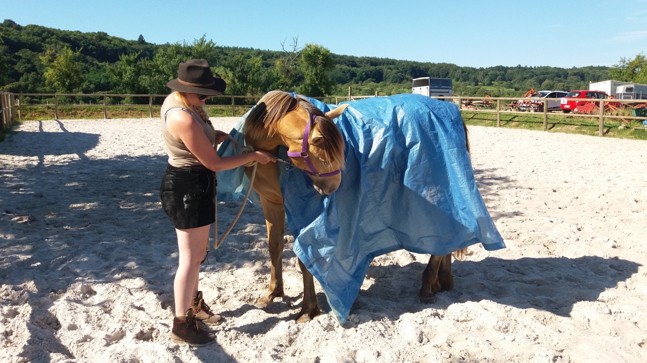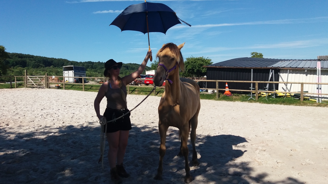 | Dire merci | Voici trois petites photos de Fer'ann datant de fin juillet. Au niveau boulot ça y est on part en balade tous les deux, même s'il est toujours très tendu cela se passe plutôt bien, on marche, on trotte et on galope |