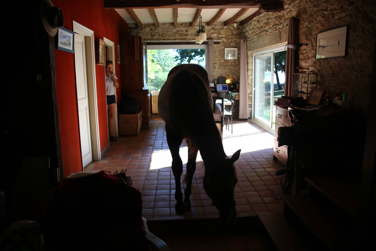 ... hier, on a laissé la demoiselle en mode "découverte"... si bien qu'elle est rentrée dans la maison et se serait bien installée dans le canapé si je n'avais pas dit stop ... but de la manoeuvre selon mon ami : qu'elle n'ait pas peur de venir me déloger du bar lors de nos futures randos...