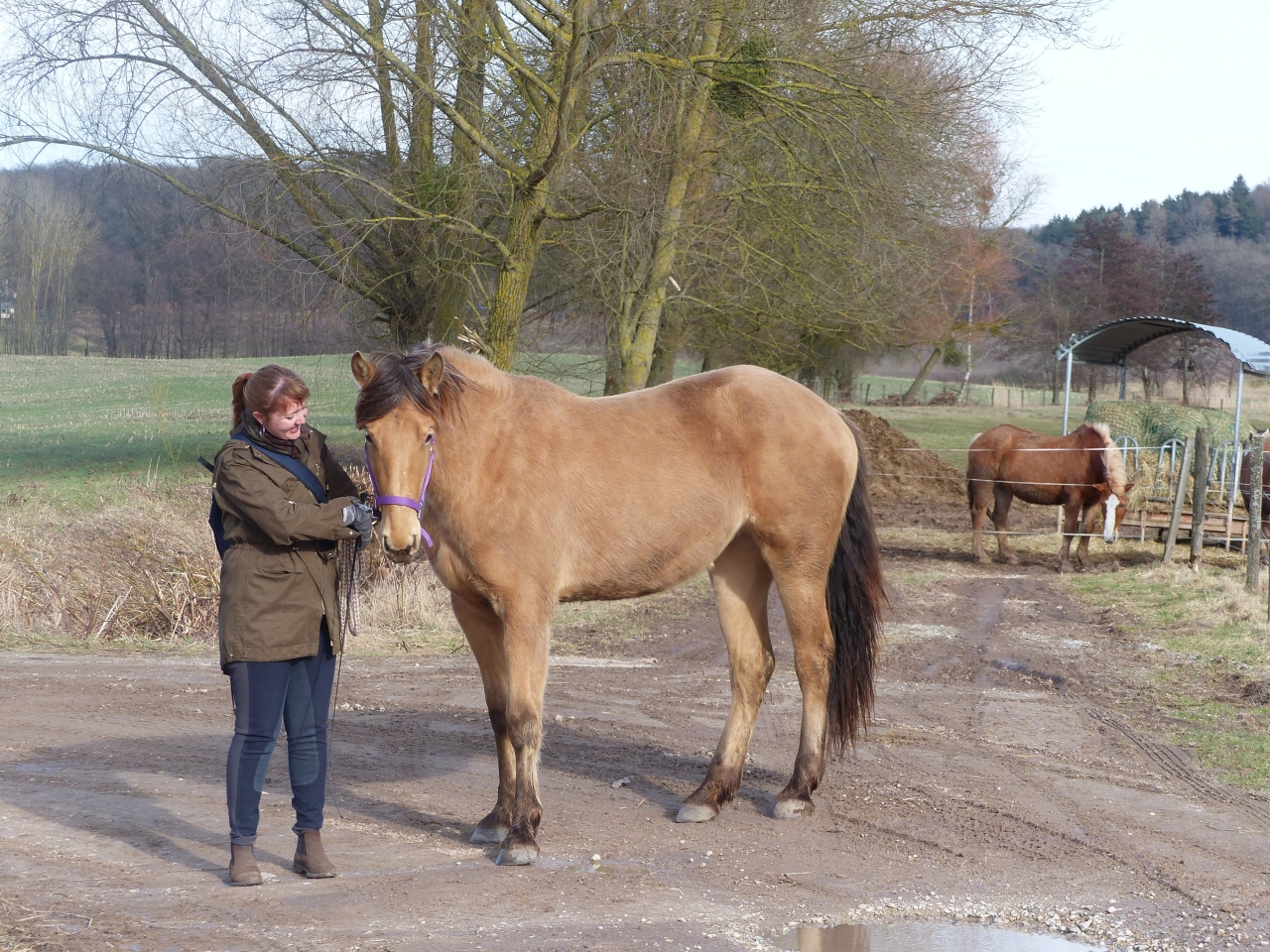 | Dire merci | Oui les pieds sont un peu longs. La pouliche est pas chez moi encore mais j'ai confiance en la personne qui la garde en pension pour l'instant, il va sûrement faire le nécessaire ![]() A priori mon F est vendu j'ai trouvé une chouette famille. Pour l'instant je leur laisse "à l'essai" pendant 1 mois, voire si le feeling passe bien. J'espère que le charme va continuer à opérer parce que j'ai bien accroché avec cette famille là. .. |