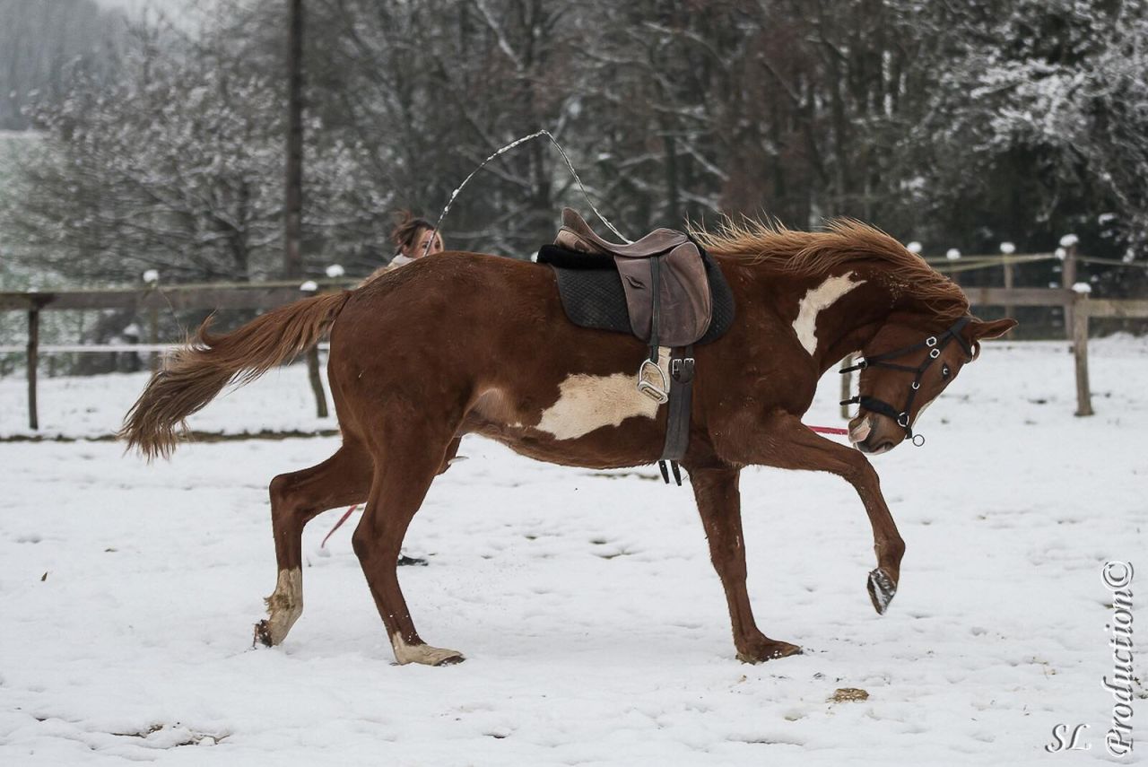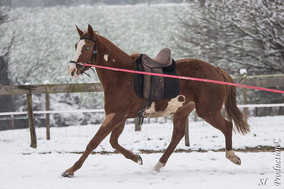 | Dire merci | Ici Fawny travaille toujours avec beaucoup de plaisir et de très bonne volonté. Il comprend tout très facilement, je l'ai monté 3 fois au pas pour le plaisir. J'ai reçu sa nouvelle selle cette semaine mais je suis un peu trop overbookée pour en profiter ... Je n'ai que des vidéos du doudou monté ou à pied, en tous cas malgré ses cacahuètes il est génial, bien plus disponible et volontaire que toutes mes juments réunies si j'avais su je n'aurai pris que des mâles ...Normalement cet été on commence la petite carrière, il ira quand même chez une amie pour finir son débourrage dans les meilleures conditions (on est pas équipés pour bosser le galop, et je veux qu'il soit aux ordres aux 3 allures avant de partir en extérieur). |