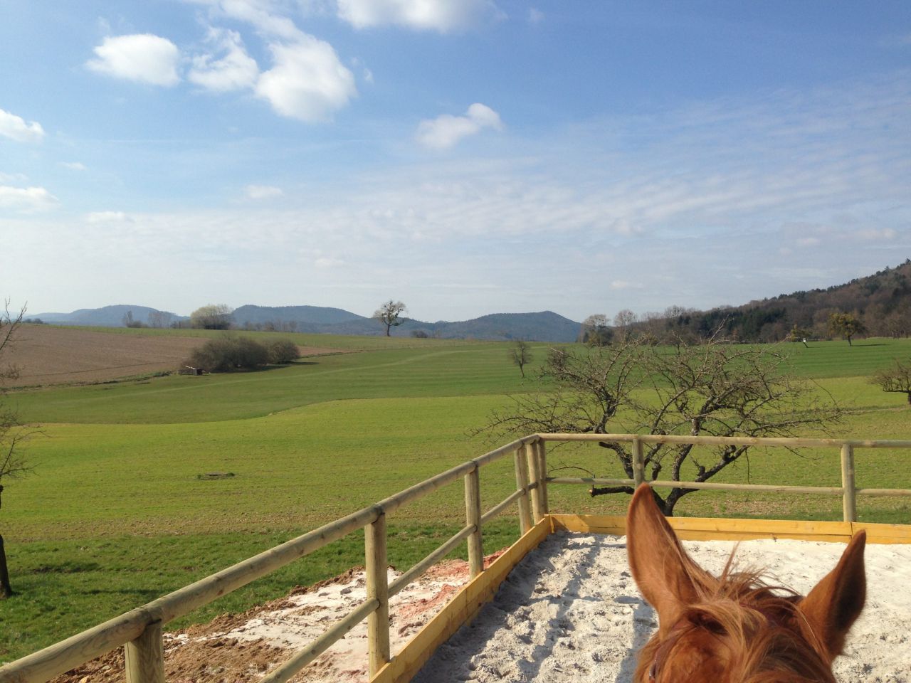 | Dire merci | Tu peux bosser en balade. mais perso monter sur une carrière pas top je préfère ne rien faire que d'y laisser les articulations ou tendons de mon cheval |