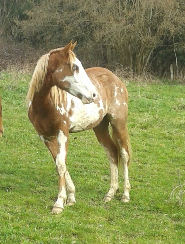 DéconnectéDire merci | Bonjour, Photos de ma pouliche qui date de l'été dernier. Elle a ses taches blanches avec halo surtout visible sur la tête. Des poils blancs parsemés. Ce printemps, elle présente une intensification des poils blancs. Des yeux vairons. Désolée je n'ai pas de photo récente. Merci de me dire de quelle robe elle est pour vous. Lien Lien Lien Lien |