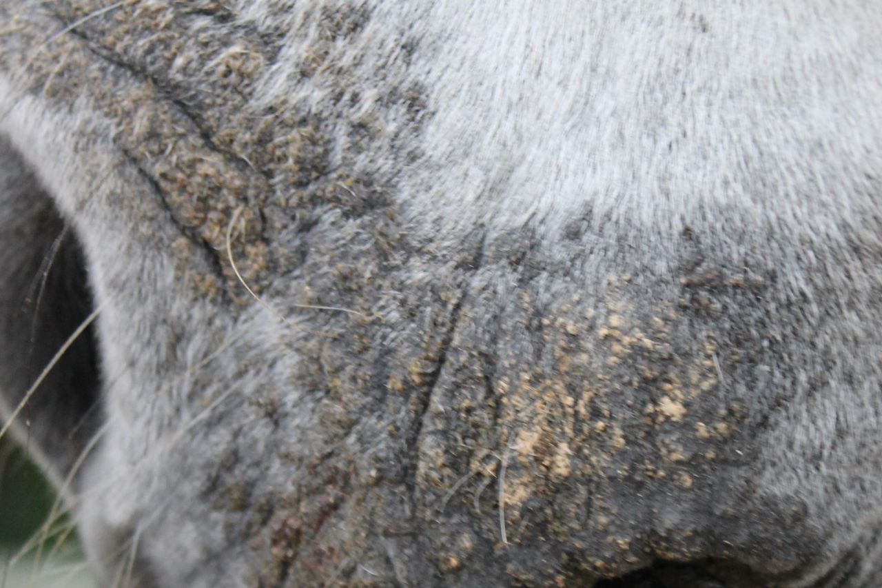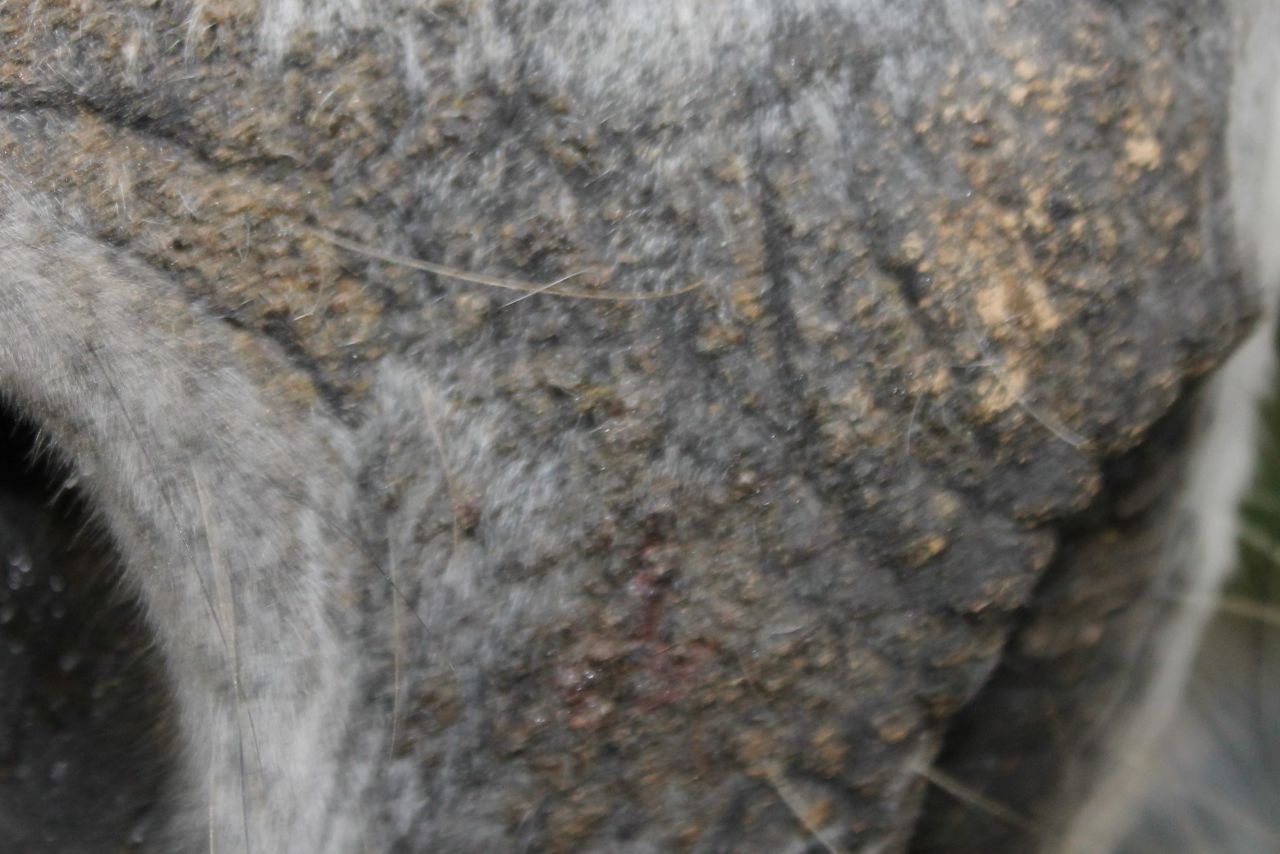 | Dire merci | Ce soir les zones sont à certains endroits à vif. Le tour de l'oeil gauche est bien attaqué. Demain j'ai un déplacement le matin, l'AM j'irai prendre les produits et passerai chez le véto avec des photos de la progression. |