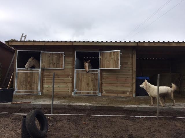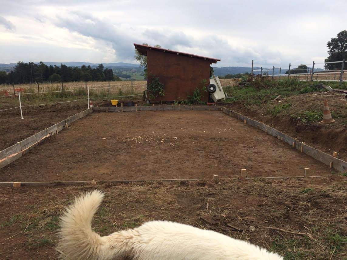 | Dire merci | ca y est, une semaine que mes juments dorment à l'abris on terrasse ![]() on coule la dalle ![]() après trois semaines de séchage, on attaque mais difficilement à cause du temps ![]() mais je suis tellement pressée que je serais capable d'y faire sous la neige !! ![]() même de nuit ![]() ![]() et voilà tout le monde au dodo ![]() bon j'ai pas encore l'eau courante et l'électricité, mais tout est acheté, faut juste que mon homme trouve un peu de temps pour faire les branchements. La cloture en fils est provisoire, à terme ce sera une barrière en bois mais mon budget doit se refaire un peu tout de même. Avec toutes les planches de rabe qui restent on va fermé à moitié l'abris à foin. très contente de contact Pologne pour tout sauf le plan qui est plus que sommaire ![]() |