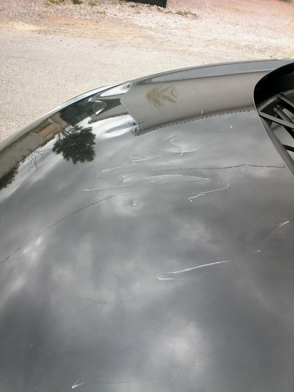 | Dire merci | Ma vieille voiture est garée dans la cour à côté du stockage de la botte de foin. Il m'est arrivé de laisser mes bestioles brouter direct dans la botte le temps de les préparer. Bilan : capot rongé comme celle de ton voisin, rétros pliés car ce sont des gratte-luc idéaux. Bon, elle part à la casse donc pas gênant mais je ne sais pas quel plaisir elles trouvent à ronger la peinture ? En plus, ça doit être hyper toxique... |