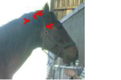 | Dire merci | Hello! J'ai des soucis avc Quiator depuis plusieurs mois, il a de grosses douleurs a la nuque/cervicales/machoire et j'aurais voulu des temoignages sur le sujet. Je vous met une petite photo que ma physio m'a envoye pour vous montrer ou la douleur se trouve: ![]() ![]() (bon ok on voit rien )Bref j'explique un peu plus: Fin d'ete l'annee derniere, il a commence a faire du Headshaking au travail. Je fais venir ma physio et douleurs +++ cervicales (nuque). Vraiment pas bien du tout. Elle me dit qu'il a du se faire mal , coup violent ou tirer au renard ou un truc du genre... Bon ok... il vivait dehors H24 , seul, en paddock , clotures nickel (rubans)... Il ne tire pas au renard. Bon il va mieux, je le rebosse normalement. Puis vers decembre-janvier je le sens encore pas top (pas au boulot, tres "chaud" et tendu, leger head shaking) Bon au depart je met ca sur le compte que je le bosses moins, il est en boxe H24 et on a pas le droit de longer ou faire de liberte ds le manege/carriere et c'est l'hiver ca pique les fesses! Mais il se degrade dc re-physio fin fevrier. La cata, dos completement en vrac (il s'est coince ds son boxe dc ca devait venir de la) mais egalement cervicales (mais on ne releve pas car il etait tellement de traviole de partout que ca se comprend). Bref je change de pension entre tps. Et depuis mars il me refait du head shaking au travail, monte et meme parfois en longe en licol. J'essaye le filet de nez mais aucun resultat et il devient de pire en pire au travail (refus de se mettre en avant, s'accule et va meme jusqu'a essayer de se mettre debout ce qu'il ne fait jamais!)Dc je fais revenir ma physio mardi dernier et le resultat est en image au debut de mon post... Mal a la machoire et cervicale/nuque +++ Bon du coup on se dit qu'il y a autre chose derriere.... J'ai appele mon veto il me dit que c'est delicat car on ne sait pas ou regarder dc panoplie d'examens en perspective (radio, echo...) Du coup il me dit de le remettre au boulot et de voir si ca revient. Je comprend bien son point de vu mais j'ai vraiment le sentiment qu'il y a un truc qui cloche... Des avis? Conseils? Experiences? Desole pour le roman |