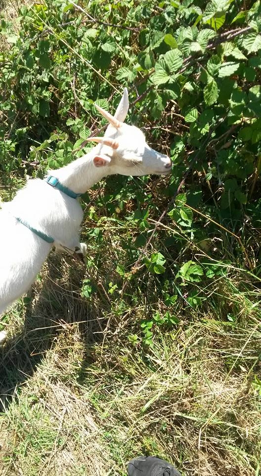 | Dire merci | Allez du nouveau ! La biquette va bien, elle s'avère très efficace sur les coins du jardin ou la tondeuse est impossible à passer, 4 jours au même endroit et c'est tout tondu! Elle se régale aussi des feuilles de ronciers! bon la la pauvre à du boulot, alors j'y vais quand même au coupe fil, c'est juste 20 000 fois plus rapide ! mais elle se régale de manger les feuilles sur les branches coupées et c'est vrai que si elle a l'occasion d'en avoir un ds sa zone de brooting elle se régale, donc c'est pas plus mal ! par contre je la mettrai sur les petites repousses de ceux que je coupe, je pense que la elle sera redoutable. Trés utile aussi pour le débroussaillage du potager, on lui file les mauvaises herbes et elle se régale! Bon sinon elle a son caractère, la bouffe faut pas lui en promettre sinon ba..elle charge de temps à autre lol de même quand on veut la rentrer le soir ou la changer de place, si elle en décide autrement (en se jetant sur les fleurs au passage) Mme se met à genoux pour nous bloquer, et si on insiste un peu plus elle s'allonge de tout son long et se laisse trainer ...on dirait un gamin capricieux ds un centre commercial ! (mais si celui qui traine sur le ventre accroché au pantalon de sa mère au rayon bonbons!) Bref elle me fait marrer Bon sinon elle est attachante et calinette ! elle voit les chevaux tous les jours, mais hier elle a vu ma jument de prés (je la sortait au pré on est passé à coté de la biquette) et bien j'ai cru que Satine allait me faire un arrêt cardiaque, elle a paniqué grave! Bon du coup, ce matin : division du paddock des chevaux en deux, doublage du fil du bas sur une moitié de paddock ( que je vais devoir enlever par la suite car c'est bien trop bas, j'ai peur que les chevaux y passent un pied, mais pour l'instant ils n'ont pas accès à la zone), et Mme va avoir droit à une cohabitation directe avec les chevaux pendant quelques temps histoire de s'habituer pour espérer les mettre ensemble cet hiver ! Au fait voila la bête ![]() ![]() ![]() |