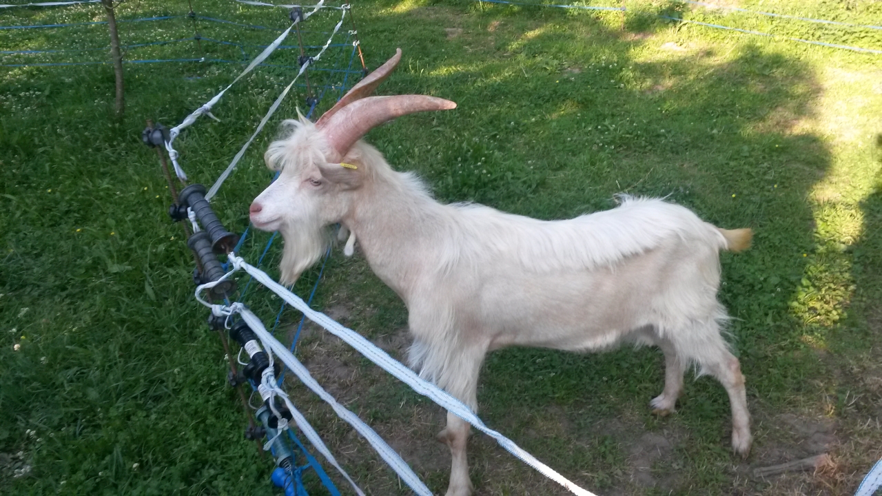 | Dire merci | super mignonne ! du as du temps pour elle c'est ça qui est bien, j'ai grandi avec des biquettes ! on a eu bien sûr droit à toutes les bêtises, mais je trouve que pour des enfants ou des jeunes qui ont du temps c'est chouette ! le harnais ne lui fait pas des zones sans poils ? perso je mettais des colliers à moutons : avec un anneau qui tourne, ceux du commerce ne tiennent pas longtemps, alors on le faisait faire chez un harnacheur (ou bourrelier et ça faisait la vie de la biquette ! la corde : on tressait des grandes ficelles à ballot, on en faisait de la corde épaisse de 3 doigts ! quand ça s'entortille c'est la seule qui ne se défait pas. (je n'ai plus mes chèvres mortes de vieillesse mais j'ai encore les cordes !! ) et pour fabriquer un paddock électrifié on utilisait le grillage complet électrifié : car les fils ou rubans ça passe à travers. les chevaux : au début elles en ont très peur, la seule solution que j'avais trouvée était de les enfermer dans l'écurie ensemble (avec un cheval gentil ! ) : au bout d'un moment la biquette se calme car elle voit qu'elle ne craint rien. je surveillais bien évidemment |