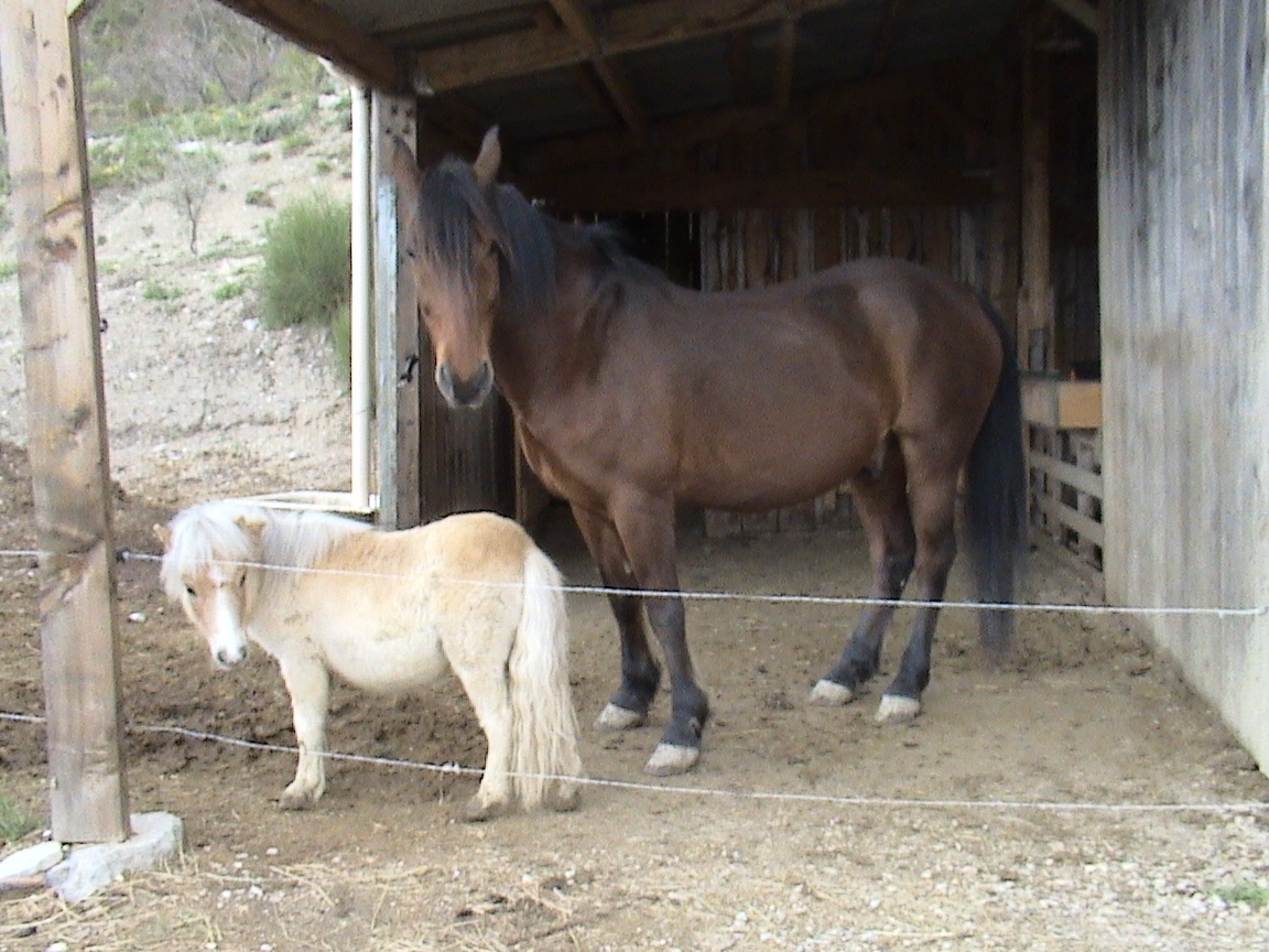 | Dire merci | Mon cheval d'1,65 a été mis au pré avec ce petit bout de 6 mois qui venait d'être sevré. Ils se sont retrouvés après une séparation de quelques années et ont revécu ensemble pendant une bonne année, ils étaient inséparables et le petit, très effronté, n'avait aucun problème pour se faire respecter. ![]() ![]() |