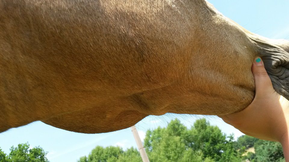| Dire merci | Bon je suis un peu prise au dépourvu.. Ma mamie va au pré tous les aprems, et comme partout on est harcelé par les taons, donc elle aussi... j'ai repéré une piqure bof bof sous l'encolure il y a peu, traitée à l'argile pour que ça désenfle, la piqure a légèrement désenflée MAIS...je trouve que la jument a les ganglions sous l'auge enflés...c'est indolore, mou mais plus enfle que d'habitude... elle a un fly mask donc je ne pense pas à une piqure à cet endroit la... Bon j'ai attendu, ça ne désenfle pas , je viens de prendre la température elle est à 38.6... C'est en dessous de la normal je crois, mais je n'ai pas de mesure normale pour elle, je ne lui ai jamais pris la température quand tout roule... Je viens d’appeler ma véto : vacance jusqu'au 6 Juillet inclus, pas de numéro de remplaçant... On a bien un véto sur le coin, mais spé brebis et bien incompétent à mes yeux... j'aimerai au moins avoir un sachet de truc anti oedemateux ou je sais pas quoi à lui filer... qu'en dites vous ? on s'alarme et on appelle le premier venu ou on se dit que "ça peut le faire"... A part ça, elle mange bien, boit normalement, demande à aller au pré, hennit quand elle me voit... je compte reprendre la température vers 14h00 |