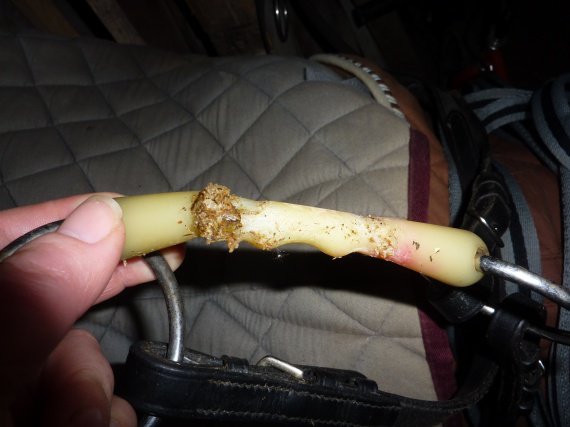 | Dire merci | Ton mors, on dirait bien qu'il s'est fait croquer par une dent de loup! Mets lui un mors en métal, qu'elle ne puisse plus l'abîmer même si elle le machouille. + dentiste of course! |