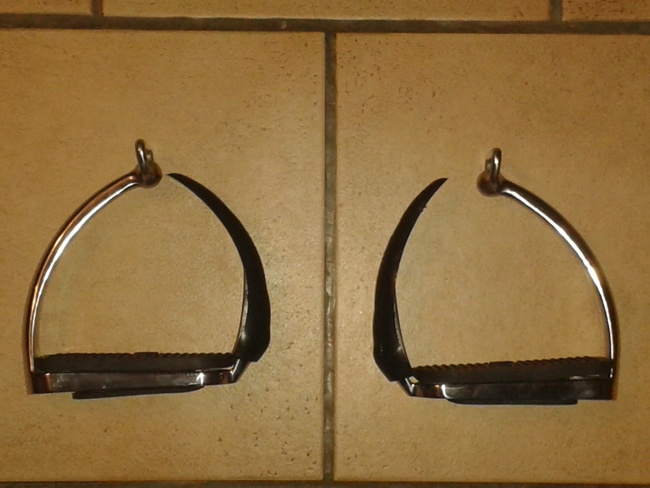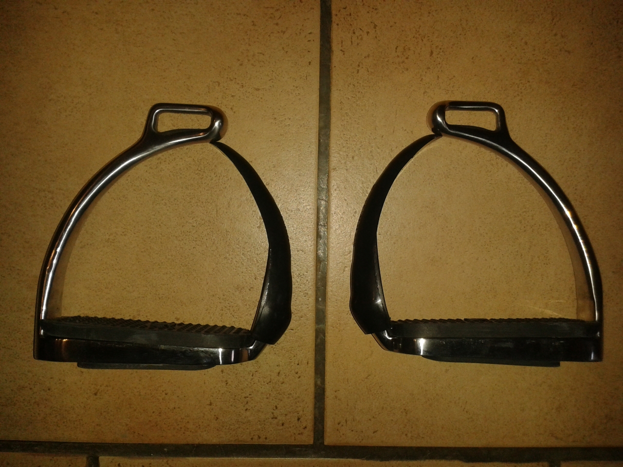 | Dire merci | Les deux paires sont arrivées ! ![]() Très bien emballées ( étriers dans bulles...) Ils sont légèrement compensés : 0,9 cm au plus petit & 1,3 au plus haut ( là où c'est en fer ) Les classiques : ![]() Les 90° : ![]() Y'a plus qu'à les essayer ( pour ma part, je ne sais pas quand, ma selle n'est pas encore adaptée comme il faut à mon loulou... ) |