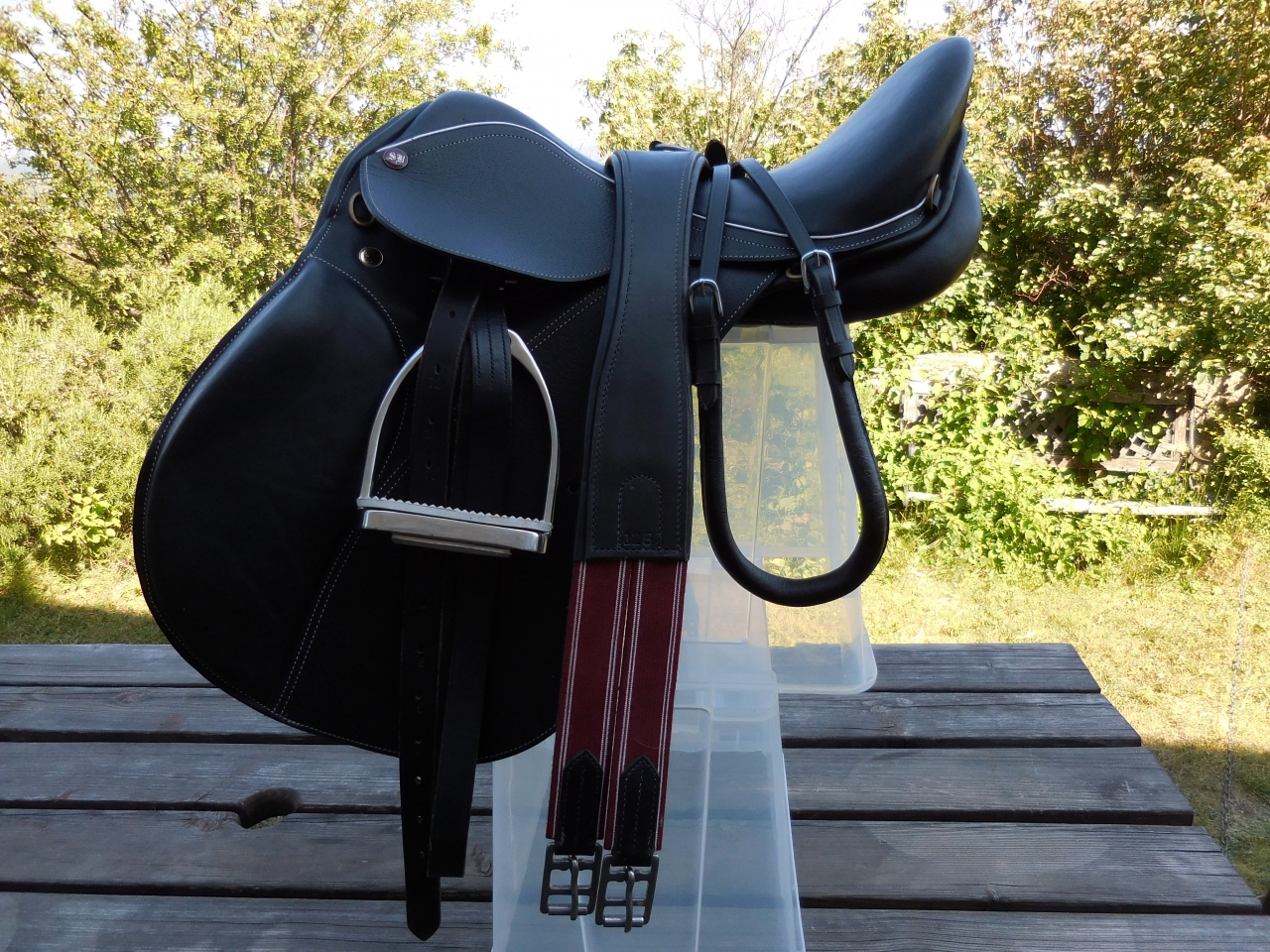 | Dire merci | army Si tu veux, j'en ai une anatomique, en cuir, à élastiques en 125 cm, en attendant de trouver un acheteur, je peux te la prêter pour essayer, elle est quasi neuve... C'est celle qu'il y a sur la selle : ![]() et de l'autre côté : ![]() |