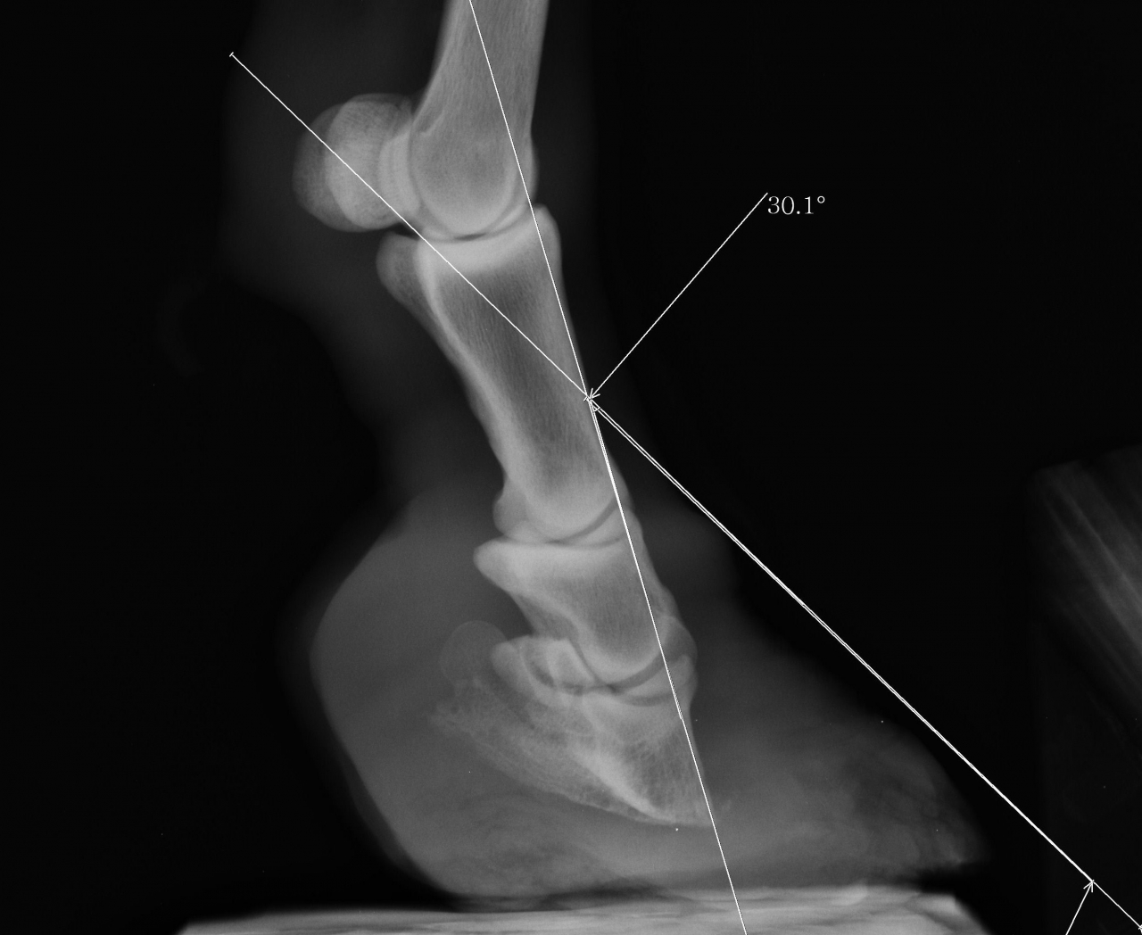 Fourbure avec bascule 30° phalange