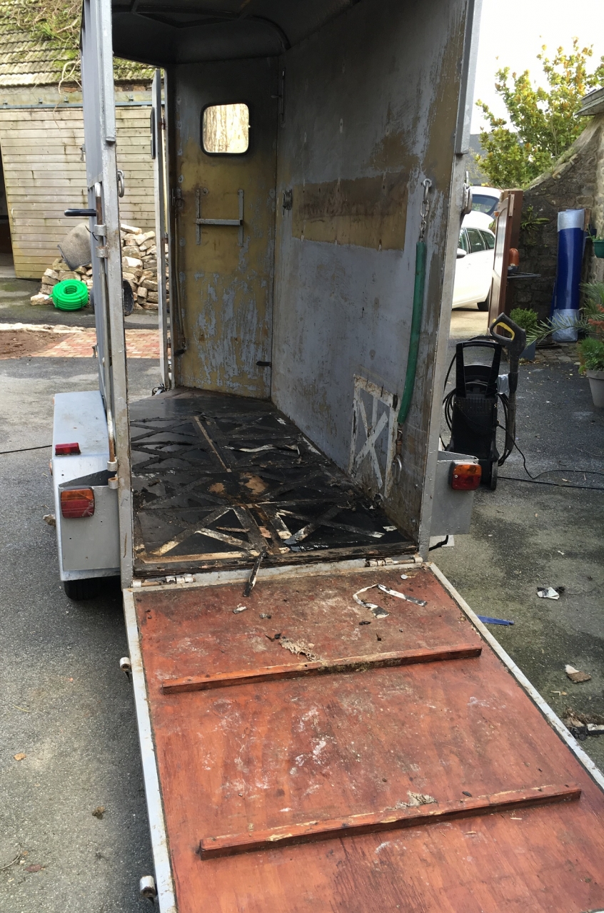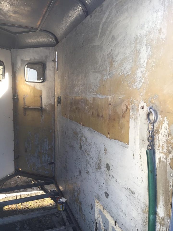 | Dire merci | Renseigne toi à Fautras, ils vendent leurs plaques pour le fond de van (environ 450 euros la plaque pour un 2 places de mémoire). Je me suis renseigné pour mon IW 2 places. A toi de faire la découpe. C'est du 18mm. Le revendeur par chez moi m'a même dit qu'il pouvait être recouvert de "granulastic" après avoir sérieusement griffé la couche du dessus mais je pense qu'un tapis caoutchouc est plus simple (je pourrais l'enlever lorsque l'on rentrera le foin, la paille, moins galère pour balayer). Le fond bois que j'ai mis à 10 ans et il rends l’âme. Les caoutchouc d'origine au sol sont lisses donc glissants quand ils sont mouillés. Du coup une réfection total est à envisager pour reprendre les sorties. Pour les cotés, je pars sur des plaques style "Komacell" à l'intérieur, avec une plaque type "alupanel" à l'extérieur pour une belle finition et je pense un cp sur une certaine hauteur pour protéger l'intérieur des éventuels coups de pieds. L'intérieur niveau barre de poitrail sera aussi modifié pour être modulable et pouvoir transporter un cheval et un poney en même temps (là c'est une barre qui fait toute la largeur). |