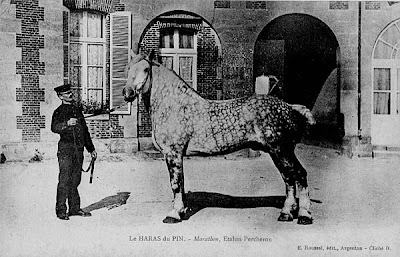 | Dire merci | D'ailleurs, le cob normand, qui n'a pas été élevé pour la viande, est vachement plus fonctionnel... et polyvalent. Chez ma belle-mère il y a une vieille carte postale du marché aux chevaux de Commana (dans les Monts d'Arrée) au début du XXeme siècle. Ben c'est bluffant, les chevaux bretons de cette vieille photo ressemblent beaucoup plus à mon cob normand qu'aux steak à patte actuels. Forcément, entre ça: ![]() et ça: ![]() Ben y'a pas photo niveau possibilités de débouchés en loisir! |