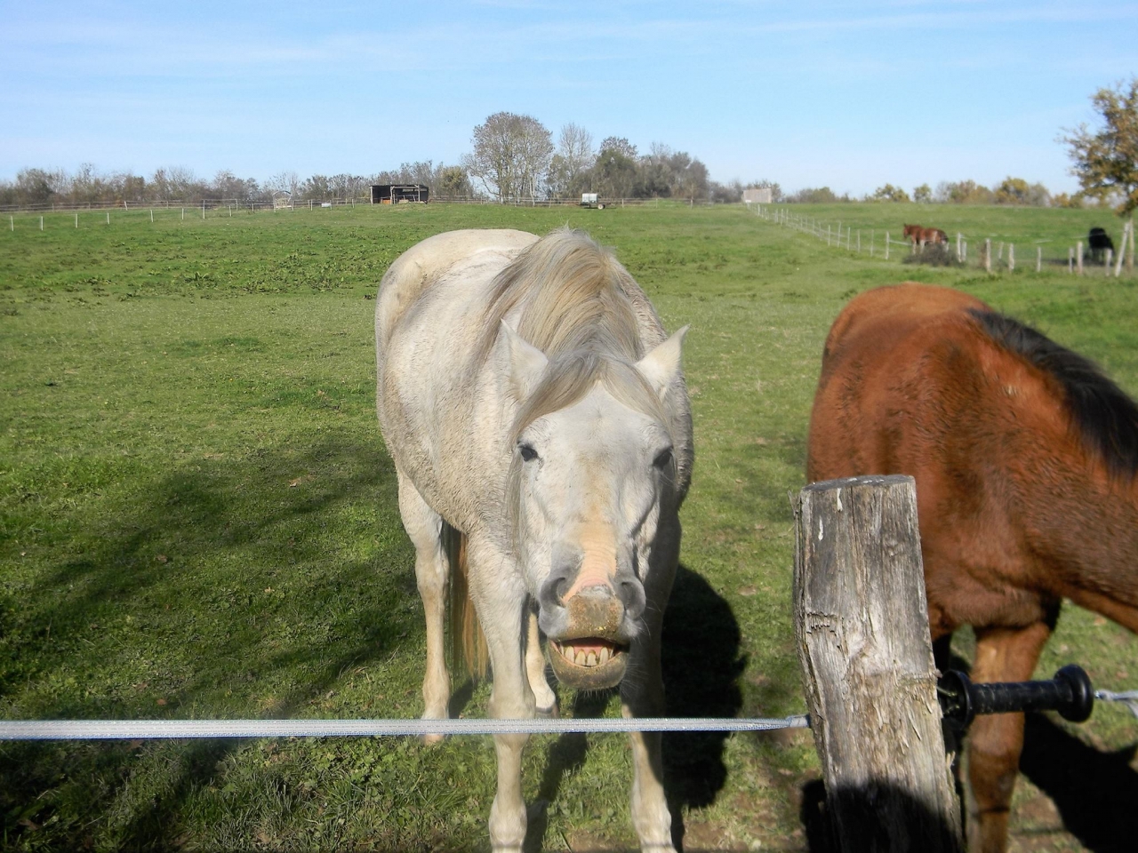 | Dire merci | La ou étaient mes chevaux clôtures nickelles, électrifiées, pas de barbelés, eau et bouffe tous les jours, pour l'eau il laissait une tonne à eau et remplissait le bac tous les jours, et le foin fait sur place était de bonne qualité. Mais c'est clair que c'était un peu la perle rare en matière de pension, j'avais même droit au petit café quand je venais voir mes chevaux Après il n'avait que moi comme cliente, personne d'intéressé..... Moi idem j'avais mis des annonces pour prendre 1 ou 2 chevaux en pension à la maison, 7 hectares, foin fait par nos soins, ration, stabulation libre, écurie pour préparer les chevaux, faire les soins, etc, sellerie, carrière en herbe, pour maxi 150€ / mois (notre gros avantage étant que mon compagnon est véto équin donc véto sur place + surveillance quotidienne + soins j'estime que ça a un prix..... ) ben idem personne d'intéressé..... |