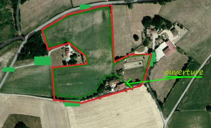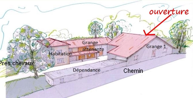 | Dire merci | Non parce que je n'ai que la moitié grange qui donne sur la cour, l'autre "face" ne m'appartient pas. Il y a deja un accès la mais que je ne peux pas utiliser ce qui est en rouge cest la totalité de l'achat avec mes amis mais il y a des subtilités sur la répartition des différents bâtis |