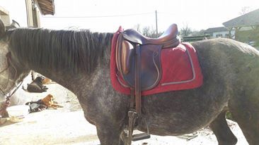 | Dire merci | Pascale tu es assise? Je monte en Terry's Bon ok on est loin d'une Prestige ou Kieffer, mais très honnêtement: - elle va bien à mon cheval - elle me va bien à moi J'aime les belles selles, mais ça viendra plus tard, mon cheval va encore beaucoup changer.... On a beaucoup progressé déjà avec cette selle, j'ai énormément amélioré ma position, elle permet à mon cheval de bien fonctionner et il a gagné en locomotion grâce au travail mais aussi à la selle, qui lui convient vraiment bien. Je trouve que c'est un modèle avec un bon rapport qualité / prix, surtout en occasion, et s'il faut en rechanger dans 6 mois, vu nos progrès, je ne regretterai pas les 250€ que j'ai mis dedans. Et facile à revendre sans perdre d'argent! Et entretenue avec des produits de qualité le cuir est plutôt agréable, j'utilise des produits d'entretien de grands selliers et elle n'a plus la même gueule que quand je l'ai reçue, ça joue aussi.... |