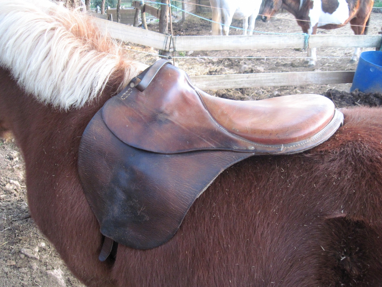 | Dire merci | Mon shet à la Wintec. Je la trouve nickel, avec ses "matelassures" qu'on peut positionner comme on veut (ou enlever complètement je suppose, mais moi j'utilise avec). Et la position des petits cavaliers est vraiment "bien". On a mis des étrivières à crochet pour ne pas avoir de sur-épaisseur sous la cuisse. |