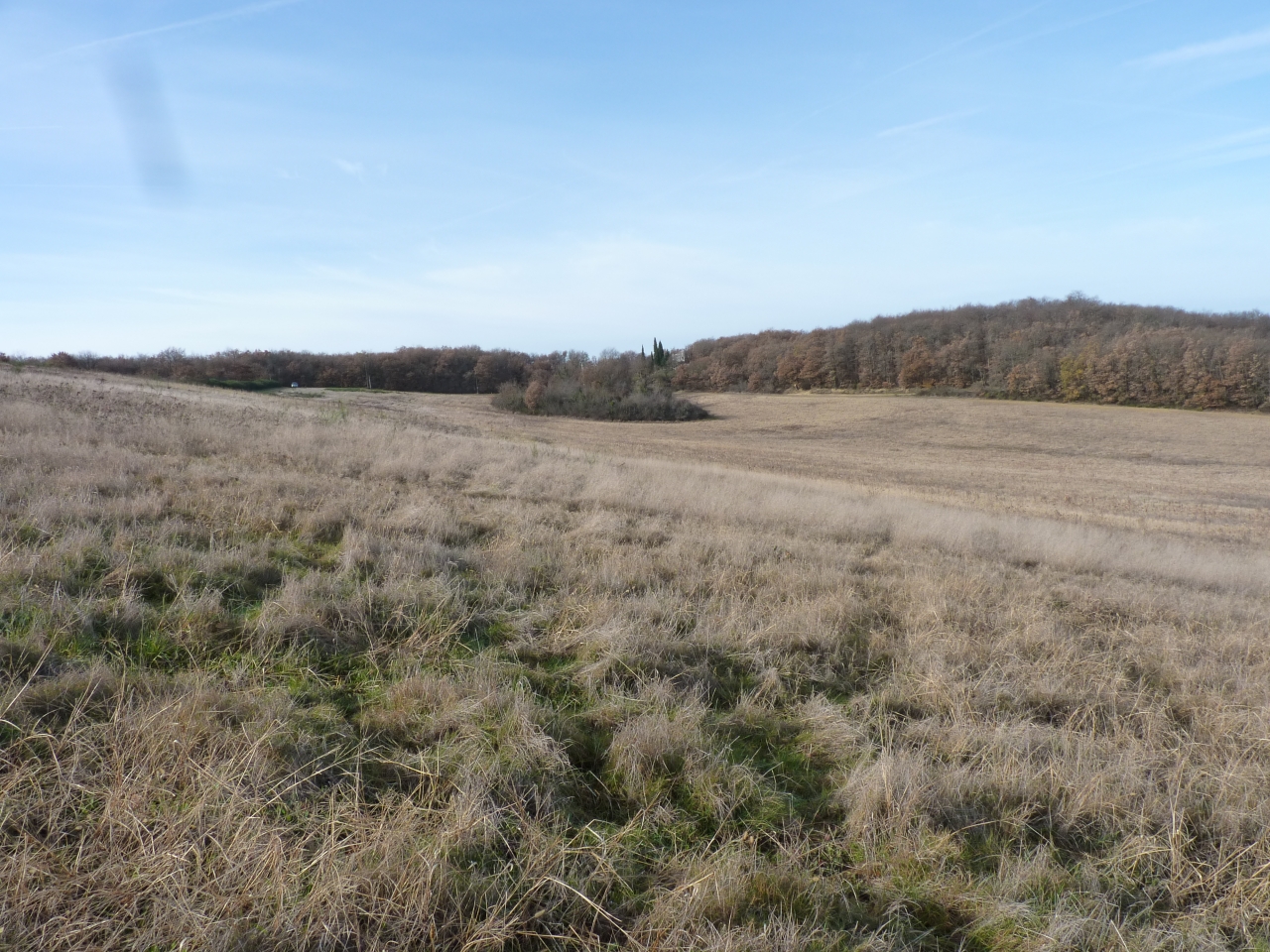 | Dire merci | On vient d'acheter 5 Ha nous aussi, pour faire du foin. Il y a eu des chevaux dedans pendant longtemps, c'est bien râpé, et ça n'a jamais été entretenu, c'était envahi de broussailles..... On a commencé par passer le broyeur partout, et on va faire analyser un échantillon de terre pour savoir s'il faut chauler ou pas, mais de toute façon on aura pas un gros rendement pour cette année, on s'y prend un peu tard.... Pour l'année prochaine on va labourer et re-semer, avec engrais si besoin. Après nettoyage ça donne ça, on voit que c'est assez pauvre: ![]() |