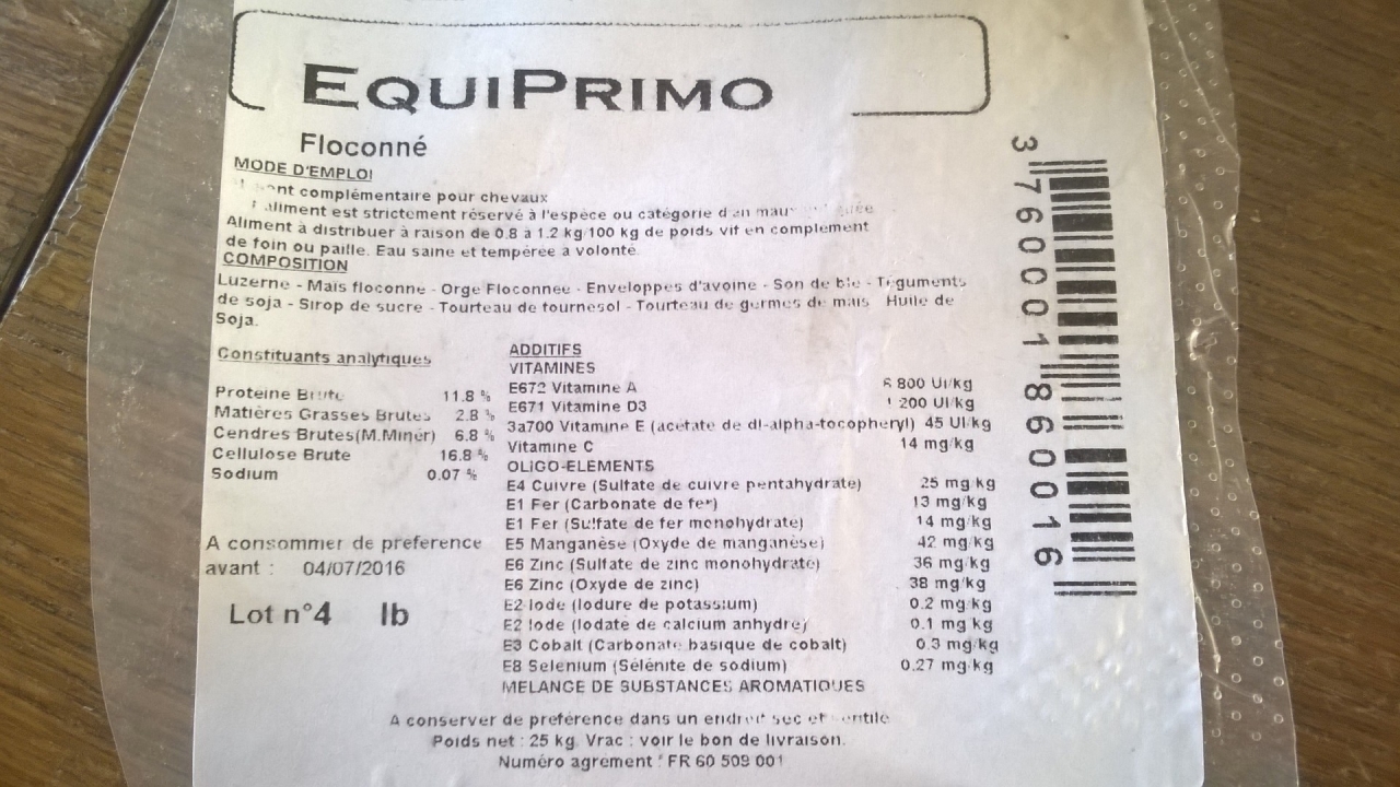 | Dire merci | Je viens de regarder la composition de mon floconné (que je prends chez mon moniteur qui commande en gros) et ça me rassure pas! Mon cheval (TF qui prend 6 ans) a herbe + foin a volonté (mais les 2/3 dernières bottes étaient pas tip top qualité), il bosse en moyenne 3 fois par semaine, mais avec mon moniteur on le trouvait un peu trop fit donc là je le complémente avec du floconné (2X 2L/ jour) et un petit peu de pulpe de betterave réhydratée, je le trouve bien mieux niveau état, il commence à se muscler, au boulot il est bien, énergique mais pas chaud, mais au pré il est devenu con et agressif avec les autres, alors qu'il est plutôt dominé à la base..... Donc du coup je me demande si la ration est adaptée ![]() Voilà la composition de mon aliment, je suis pas assez calée pour la décrypter, sachant qu'aux écuries les chevaux de club qui n'ont pas non plus une activité intense et vivent en boxe / paddock ont le double en quantité (soit 8L / jour) sans problème particulier, ils n'ont pas vraiment "trop de jus", bref ça semble plutôt bien leur convenir: ![]() Le sirop de sucre me fait tiquer par contre! Et mon cheval, niveau état en ce moment: ![]() Mon compagnon me dit qu'il faut une ration pour qu'il fasse du muscle et ait suffisamment d'énergie au boulot, mais la il pense que je nourris trop et qu'il faut lui donner seulement 3L/ jour sans pulpe de betterave. Un avis? |