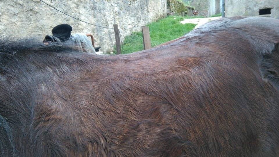 | Dire merci | un peut partout sauf tout le dos donc , de la croupe au garrot sec, niveau des côtes juste humide . mais de toute façon je sent mon cheval plutôt conquis donc plus qu'a voir si ostéo ok je serais bien ravis ( j'y crois ! ) |