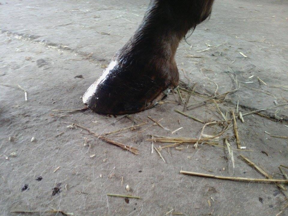 | Dire merci | Oh la cata... Tu as une photo après parage ?? Complètement droite devant, beaucouuuup trop de talon, l angle de la paroie n est pas aligné avec l angle du membre. A l arrière tronquer la pince ne serait pas du luxe ! |